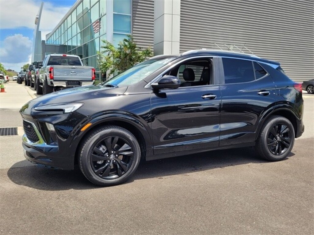 - THE 2024 BUICK ENCORE GX SPORT TOURING COMBINES MODERN DESIGN SPORTY FLAIR AND PRACTICAL UTILITY IN A COMPACT SUV PACKAGE. THIS REFINED TRIM OFFERS AN ENHANCED EXTERIOR WITH GLOSS-BLACK ACCENTS A DISTINCTIVE GRILLE WITH RED DETAILS AND EXCLUSIVE 18-INCH BLACK ALLOY WHEELS THAT GIVE IT A BOLDER MORE ATHLETIC LOOK. POWERED BY A 1.3L TURBOCHARGED 3-CYLINDER ENGINE PRODUCING 155 HORSEPOWER AND 174 LB-FT OF TORQUE THE ENCORE GX SPORT TOURING OFFERS SMOOTH EFFICIENT PERFORMANCE. FRONT-WHEEL DRIVE MODELS COME EQUIPPED WITH A CVT WHILE ALL-WHEEL DRIVE MODELS FEATURE A 9-SPEED AUTOMATIC TRANSMISSION FOR A MORE ENGAGING DRIVING EXPERIENCE. FUEL ECONOMY IS IMPRESSIVE AVERAGING AROUND 30 MPG COMBINED. INSIDE THE CABIN FEATURES A SLEEK MINIMALIST LAYOUT WITH A LARGE TOUCHSCREEN INFOTAINMENT SYSTEM WIRELESS APPLE CARPLAY AND ANDROID AUTO BLUETOOTH CONNECTIVITY AND AVAILABLE AMENITIES SUCH AS HEATED FRONT SEATS AND A PANORAMIC MOONROOF. THE ENCORE GX OFFERS ROOM FOR FIVE PASSENGERS AND GENEROUS CARGO SPACEUP TO 50 CUBIC FEET WITH REAR SEATS FOLDED. STANDARD SAFETY FEATURES INCLUDE FORWARD COLLISION ALERT AUTOMATIC EMERGENCY BRAKING LANE KEEP ASSIST INTELLIBEAM HEADLIGHTS AND A FOLLOWING DISTANCE INDICATOR. RIDE QUALITY IS SMOOTH AND COMFORTABLE MAKING IT AN IDEAL CHOICE FOR URBAN COMMUTES OR LONGER TRIPS. THE 2024 BUICK ENCORE GX SPORT TOURING DELIVERS SPORTY STYLE VERSATILE PERFORMANCE AND PREMIUM FEATURES IN A COMPACT EFFICIENT PACKAGE THATS READY FOR DAILY DRIVING OR WEEKEND ADVENTURES.