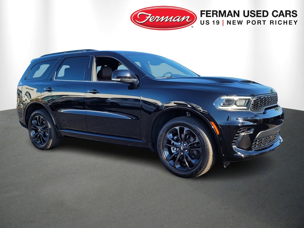 *DODGE CERTIFIED*, *ONE OWNER*, *CLEAN CARFAX*, *APPLE CarPlay/ANDROID AUTO*, *BLIND SPOT MONITOR*, *BACK UP CAMERA*, *NAVIGATION/NAV/GPS, *USB/HANDS FREE/GPS BLUETOOTH*, *SUNROOF/MOONROOF*, *LEATHER*, Durango GT BlackTop, FCA US LLC Certified Pre-Owned Certified, 4D Sport Utility, 3.6L V6 24V VVT, 8-Speed Automatic, AWD, DB Black Crystal Clearcoat, 1-Year Trial (Registration Required), 10.1" Touchscreen Display, 115V Auxiliary Power Outlet, 180 Amp Alternator, 3.45 Rear Axle Ratio, 3rd row seats: split-bench, 4-Wheel Disc Brakes, 4G LTE Wi-Fi Hot Spot, 506 Watt Amplifier, 6 Speakers, 7 & 4 Pin Wiring Harness, 9 Alpine Amplified Speakers w/Subwoofer, ABS brakes, Adaptive Cruise Control w/Stop, Advanced Brake Assist, Air Conditioning, Alloy wheels, AM/FM radio: SiriusXM, Apple CarPlay, Apple CarPlay/Android Auto, Auto High Beam Headlamp Control, Auto-Dimming Exterior Driver Mirror, Auto-dimming Rear-View mirror, Automatic temperature control, Black Roof Rails, Blacktop Package, Blind Spot w/Trailer Detection, Brake assist, Bright Cargo Area Scuff Pads, Bright Front Door Sill Scuff Pads, Bumpers: body-color, Class IV Receiver Hitch, Cloth Bucket Seats w/Shift Insert, Compass, Connected Travel & Traffic Services, Delay-off headlights, Disassociated Touchscreen Display, Driver door bin, Driver vanity mirror, Dual front impact airbags, Dual front side impact airbags, Dual Remote USB Port - Charge Only, Electronic Stability Control, Exterior Mirrors w/Heating Element, Exterior Mirrors w/Memory, Exterior Mirrors w/Supplemental Signals, Floor Console w/Leather Armrest, For Details Visit DriveUconnect.com, Four wheel independent suspension, Front anti-roll bar, Front Bucket Seats, Front Center Armrest w/Storage, Front dual zone A/C, Front reading lights, Full Speed Forward Collision Warning Plus, Fully automatic headlights, Garage door transmitter, Global Telematics Box Module (TBM), Gloss Black Badges, Gloss Black Exterior Mirrors, Google Android Auto, GPS Antenna Input, GPS Navigation, GT Gloss Black Badging, HD Radio, Heated door mirrors, Heated front seats, Heated Second Row Seats, Heated steering wheel, Heavy-Duty Engine Cooling, Illuminated entry, Integrated Center Stack Radio, Integrated Roof Rail Crossbars, Integrated Voice Command w/Bluetooth, Knee airbag, Lane Departure Warning Plus, Leather steering wheel, Leather Trimmed Bucket Seats, Leather Wrapped Door Panels, LED Auxiliary Low Beam & Turn Signal, Low tire pressure warning, Occupant sensing airbag, Outside temperature display, Overhead airbag, Overhead console, Panic alarm, ParkSense Front/Rear Park Assist w/Stop, ParkView Rear Back-Up Camera, Passenger door bin, Passenger vanity mirror, Power 6x9 Multi-Function Foldaway Mirrors, Power 8-Way Driver Memory 8-Way Passenger Seats, Power door mirrors, Power driver seat, Power Driver/Passenger 4-Way Lumbar Adjust, Power Liftgate, Power steering, Power Sunroof, Power Tilt & Telescopic Steering Column, Power windows, Premium Door Trim Panel, Premium Instrument Panel, Quick Order Package 2BH GT Premium, Radio data system, Radio: Uconnect 4 w/8.4" Display, Radio: Uconnect 5 Nav w/10.1" Display, Radio/Driver Seat/Mirrors Memory, Rain Sensitive Windshield Wipers, Rear air conditioning, Rear anti-roll bar, Rear Load Leveling Suspension, Rear reading lights, Rear seat center armrest, Rear window defroster, Rear window wiper, Red Accent Stitching, Remote keyless entry, Satin Black Dodge Tail Lamp Badge, Security Alarm, SiriusXM Guardian - Included Trial (B), SiriusXM w/360L, Speed control, Speed-sensing steering, Speed-Sensitive Wipers, Split folding rear seat, Spoiler, Sport steering wheel, Steering wheel mounted audio controls, Sun Visors w/Illuminated Vanity Mirrors, Tachometer, Telescoping steering wheel, Tilt steering wheel, Traction control, Trailer Brake Control, Trip computer, USB Host Flip, Variably intermittent wipers, Ventilated Front Seats, Voltmeter, Wheels: 20" x 8.0" Black Noise Aluminum, Wheels: 20" x 8.0" Fine Sil