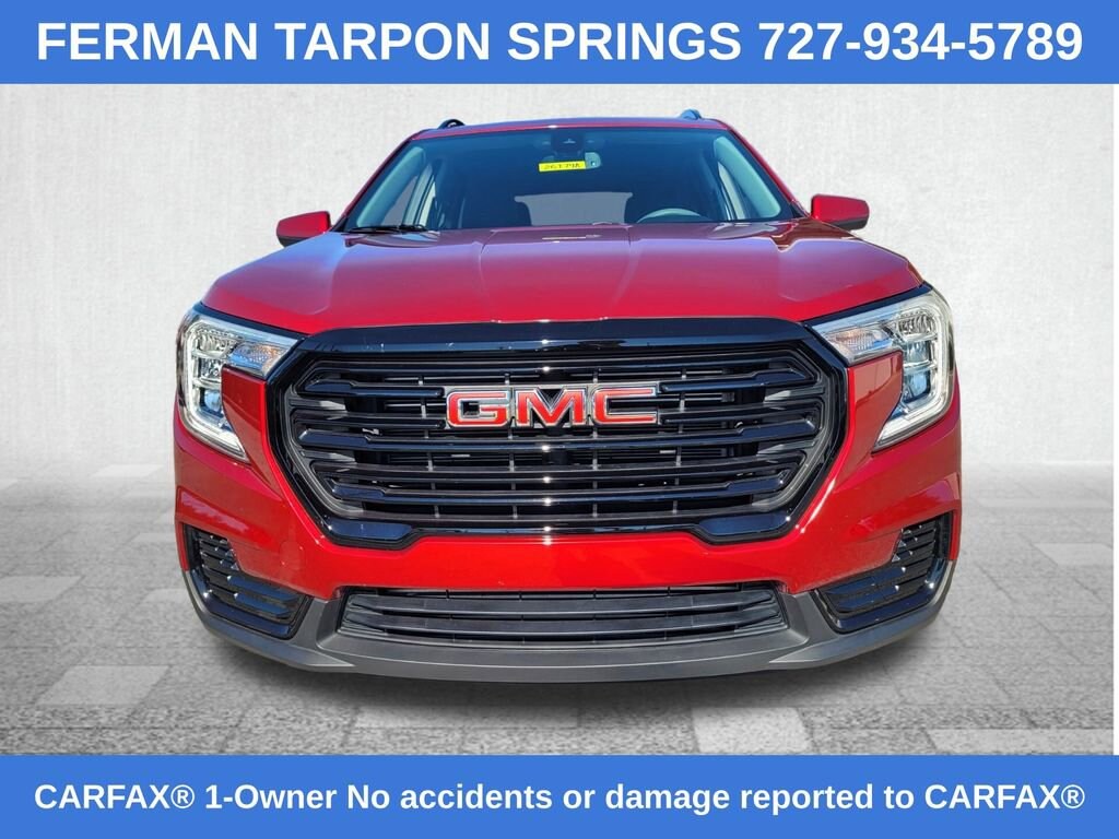 Terrain SLE, 4D Sport Utility, 1.5L DOHC, 9-Speed Automatic, FWD, Cayenne Red Tintcoat, Jet Black Cloth, 110-Volt Power Outlet, 2 USB Data Ports, 2 USB Data Ports w/SD Card Reader, 4.2 Multi-Color Driver Information Screen, 8-Way Power Driver Seat Adjuster, Adaptive Cruise Control, Alloy wheels, Black GMC Center Caps w/Red GMC Lettering, Black Mirror Caps, Bluetooth® For Phone, Darkened Front Grille, Driver & Front Passenger Heated Seats, Driver Convenience Package, Dual-Zone Automatic Climate Control, Elevation Edition, GMC Pro Safety Plus, HD Rear Vision Camera, Infotainment Package I, Lane Change Alert w/Side Blind Zone Alert, Outside Heated Power-Adjustable Mirrors, Power Driver Lumbar Control, Power Programmable Rear Liftgate, Preferred Equipment Group 3SA, Radio: GMC Infotainment Audio System w/Navigation, Rear Cross-Traffic Alert, Rear Park Assist, Remote Start, Roof-Mounted Luggage Rack Side Rails, Safety Alert Seat, SiriusXM Radio, Wheels: 19 x 7.5 Gloss Black Painted Aluminum.