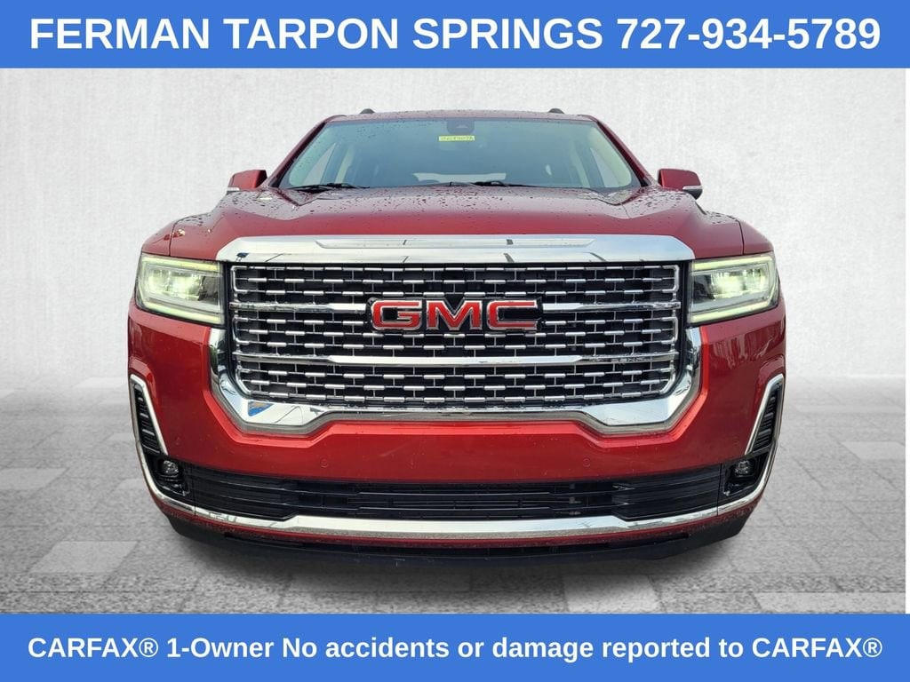 Acadia Denali, 4D Sport Utility, 3.6L V6 SIDI, 9-Speed Automatic, FWD, Volcanic Red Tintcoat, Jet Black Leather, 20 Ultra Bright Machined Aluminum Wheels, 3rd row seats: split-bench, 6-Passenger (2-2-2 Seating Configuration), 8-Way Power Driver Seat Adjuster, 8-Way Power Passenger Seat Adjuster, Apple CarPlay/Android Auto, Auto High-beam Headlights, Auto-dimming Rear-View mirror, Bose Premium 8-Speaker Audio System Feature, Heads-Up Display, Heated & Ventilated Driver & Front Passenger Seats, Heated door mirrors, Heated Driver & Front Passenger Seats, Heated Rear Outboard Seating Positions, Memory seat, Power Driver Lumbar Control Seat Adjuster, Power driver seat, Power Liftgate, Power Passenger Lumbar Control Seat Adjuster, Preferred Equipment Group 5SA, Remote keyless entry, SiriusXM w/360L.