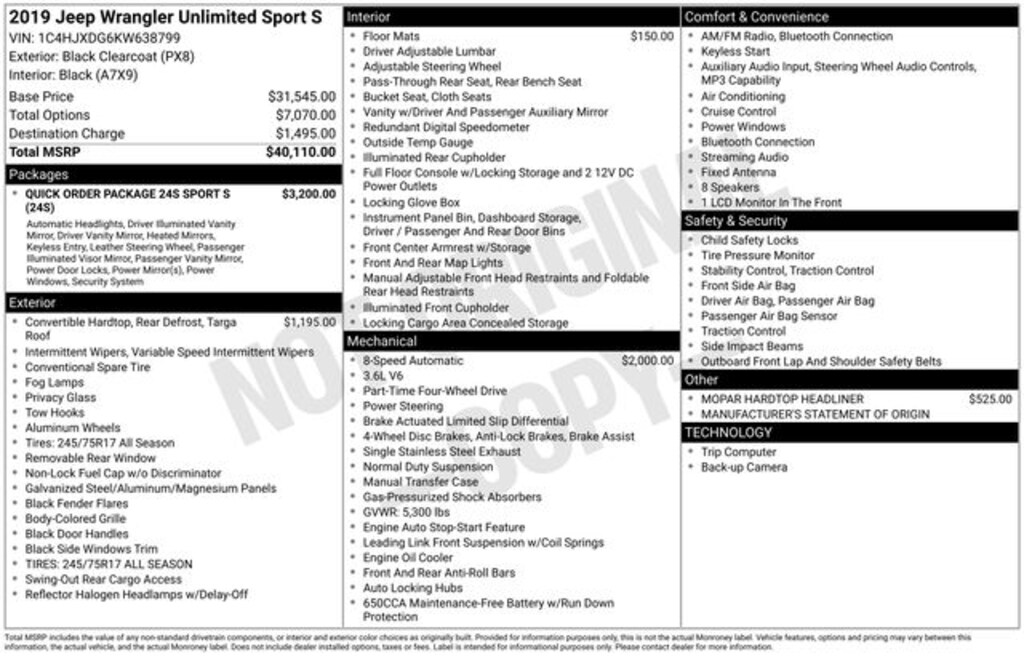 Highlights of this well-equipped Wrangler include: