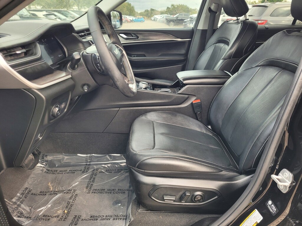 2023 Jeep Grand Cherokee L Limited Limited FCA US LLC Certified Pre-Owned Certified, 220 Amp Alternator, 2nd Row Manual Window Shades, 3.45 Rear Axle Ratio, 3rd row seats: split-bench, 4-Wheel Disc Brakes, 506 Watt Amplifier, 6 Speakers, 9 Amplified Speakers w/Subwoofer, ABS brakes, Active Noise Control System, Air Conditioning, Alloy wheels, AM/FM radio: SiriusXM with 360L, Anti-whiplash front head restraints, Audio memory, Auto High-beam Headlights, Auto-Dimming Exterior Driver Mirror, Automatic Headlamp Leveling System, Automatic temperature control, Black Appearance Package, Brake assist, Bumpers: body-color, Capri Leatherette Seats, Capri Leatherette w/Axis II Seats, Compass, Delay-off headlights, Driver door bin, Driver vanity mirror, Dual front impact airbags, Dual front side impact airbags, Electronic Stability Control, Emergency communication system, Four wheel independent suspension, Front anti-roll bar, Front Bucket Seats, Front Center Armrest w/Storage, Front dual zone A/C, Front fog lights, Front reading lights, Fully automatic headlights, Garage door transmitter, Gloss Black Exterior Accents, Heated door mirrors, Heated front seats, Heated rear seats, Heated steering wheel, Heavy-Duty Engine Cooling, Illuminated entry, Integrated Off-Road Camera, Intersection Collision Assist System, Knee airbag, Low tire pressure warning, Luxury Tech Group II, Manual Fold Seatbacks, Memory seat, Memory Steering Column, Molded In Color Black/Gloss Black Roof Rails, Navigation System, Normal Duty Suspension, Occupant sensing airbag, Outside temperature display, Overhead airbag, Overhead console, Panic alarm, ParkSense Front/Rear Park Assist w/Stop, ParkView Rear Back-Up Camera, Passenger door bin, Passenger vanity mirror, Passive Entry - Front/Rear Doors, Liftgate, Power door mirrors, Power driver seat, Power Liftgate, Power passenger seat, Power steering, Power Tilt/Telescope Steering Column, Power windows, Quick Order Package 22E, Radio data system, Radio: Uconnect 5 Nav w/10.1 Display, Rain Sensitive Windshield Wipers, Rear air conditioning, Rear anti-roll bar, Rear Back Up Camera Washer, Rear Load Leveling Suspension, Rear reading lights, Rear window defroster, Rear window wiper, Rearview Autodim Digital Display Mirror, Reclining 3rd row seat, Remote keyless entry, Security system, Speed control, Speed-Sensitive Wipers, Split folding rear seat, Spoiler, Steering wheel mounted audio controls, Surround View Camera System, Tachometer, Telescoping steering wheel, Tilt steering wheel, Traction control, Trailer Hitch Zoom, Trailer Tow Group (B) (DISC), Trip computer, Turn signal indicator mirrors, Variably intermittent wipers, Ventilated Front Seats, Voltmeter, Wheels: 18 x 8.0 Fully Painted Aluminum, Wheels: 20 x 8.5 Gloss Black Painted Aluminum, Wireless Charging Pad.