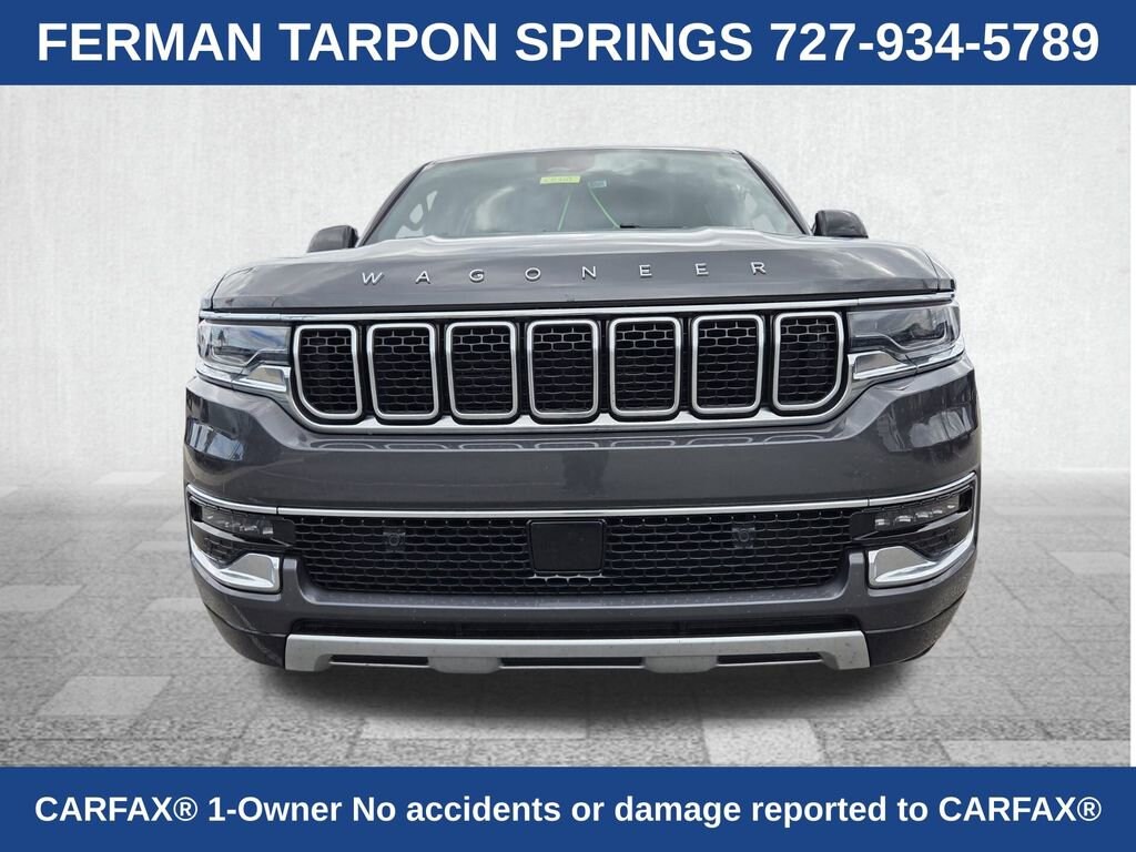 *ONE OWNER*, *CLEAN CARFAX*, *APPLE CarPlay/ANDROID AUTO*, *BLIND SPOT MONITOR*, *BACK UP CAMERA*, *NAVIGATION/NAV/GPS, *USB/HANDS FREE/GPS BLUETOOTH*, *LEATHER*, Wagoneer Series II, FCA US LLC Certified Pre-Owned Certified, 4D Sport Utility, 3.0L I6, 8-Speed Automatic, 4WD, Baltic Gray Metallic Clearcoat, 10 Speakers, 118 MPH Maximum Speed Calibration, 3.55 Rear Axle Ratio, 3rd row seats: bench, 4-Wheel Disc Brakes, ABS brakes, Adjustable pedals, Air Conditioning, Alloy wheels, AM/FM radio: SiriusXM with 360L, Anti-whiplash front head restraints, Apple CarPlay/Android Auto, Audio memory, Auto-dimming door mirrors, Auto-dimming Rear-View mirror, Auto-leveling suspension, Automatic temperature control, Brake assist, Bumpers: body-color, Compass, Delay-off headlights, Driver door bin, Driver vanity mirror, Driver's Seat Mounted Armrest, Dual front impact airbags, Dual front side impact airbags, Electronic Stability Control, Emergency communication system: Wagoneer Connect, Exterior Parking Camera Rear, Four wheel independent suspension, Front anti-roll bar, Front Bucket Seats, Front Center Armrest w/Storage, Front dual zone A/C, Front fog lights, Front reading lights, Fully automatic headlights, Garage door transmitter, Genuine wood console insert, Genuine wood dashboard insert, Genuine wood door panel insert, Heated door mirrors, Heated front seats, Heated rear seats, Heated steering wheel, Illuminated entry, Knee airbag, Leather Trimmed Bucket Seats, Low tire pressure warning, Memory seat, Navigation System, Normal Duty Suspension, Occupant sensing airbag, Outside temperature display, Overhead airbag, Overhead console, Panic alarm, Passenger door bin, Passenger seat mounted armrest, Passenger vanity mirror, Pedal memory, Power adjustable front head restraints, Power door mirrors, Power driver seat, Power Liftgate, Power passenger seat, Power steering, Power windows, Quick Order Package 25J, Radio data system, Radio: Uconnect 5 Nav w/10.1" Display, Rain sensing wipers, Rear air conditioning, Rear anti-roll bar, Rear dual zone A/C, Rear reading lights, Rear seat center armrest, Rear window defroster, Rear window wiper, Reclining 3rd row seat, Remote keyless entry, Security system, Speed control, Speed-sensing steering, Speed-Sensitive Wipers, Split folding rear seat, Steering wheel memory, Steering wheel mounted audio controls, Tachometer, Telescoping steering wheel, Tilt steering wheel, Traction control, Trip computer, Turn signal indicator mirrors, Variably intermittent wipers, Ventilated front seats, Voltmeter, Wheels: 20" x 9.0" Premium 2 Aluminum, Wagoneer Series II, 4D Sport Utility, 3.0L I6, 8-Speed Automatic, 4WD, Baltic Gray Metallic Clearcoat.