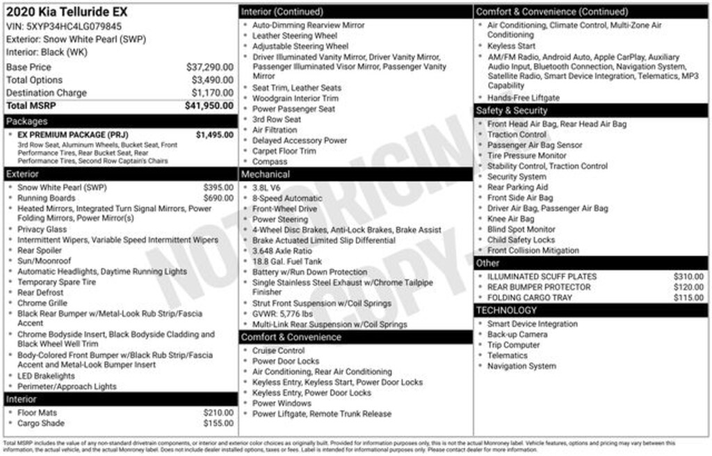 Experience the exceptional value of this 2020 Kia Telluride EX. With its impressive list of features, exceptional performance, and Certified Pre-Owned status, this SUV is the perfect blend of style, comfort, and capability. Visit our showroom today and let us demonstrate why the Telluride should be your next vehicle.