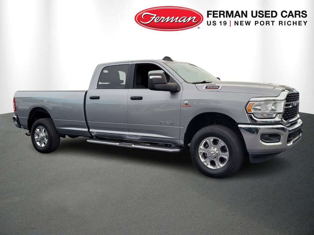 *RAM CERTIFIED*, *ONE OWNER*, *CLEAN CARFAX*, *APPLE CarPlay/ANDROID AUTO*, *BACK UP CAMERA*, *WI-FI HOTSPOT*, *USB/HANDS FREE/GPS BLUETOOTH*, 3500 Big Horn Long Bed, FCA US LLC Certified Pre-Owned Certified, 4D Crew Cab, Cummins 6.7L I6 Turbodiesel, 6-Speed Automatic, 4WD, Billet Silver Metallic Clearcoat, Diesel Gray/Black Cloth, 2 Way Rear Headrest Seat, 2nd Row In Floor Storage Bins, 3.73 Axle Ratio, 4 Way Front Headrests, 4-Wheel Disc Brakes, 40/20/40 Split Bench Seat, 4G LTE Wi-Fi Hot Spot, 6 Speakers, 8.4" Touchscreen Display, ABS brakes, Active Noise Control System, Air Conditioning, All R1 Low Radios, All Radio Equipped Vehicles, Apple CarPlay, Auto Power-Folding Mirrors, Black Exterior Mirrors, Bluetooth Handsfree Phone & Audio, Brake assist, Bumpers: chrome, Center Hub, Chrome Flat Cab-Length Side Steps, Cloth 40/20/40 Bench Seat, Compass, Connectivity - US/Canada, Delay-off headlights, Driver door bin, Dual front impact airbags, Dual front side impact airbags, Dual Glove Boxes, Electronic Stability Control, Electronically Controlled Throttle, Emergency communication system: SiriusXM Guardian, Exterior Mirrors Courtesy Lamps, Exterior Mirrors w/Heating Element, Exterior Mirrors w/Supplemental Signals, Foam Bottle Insert (Door Trim Panel), Footwell Courtesy Lamp, For Details Visit DriveUconnect.com, For More Info, Call 800-643-2112, Forward & Reverse Utility Lights, Front anti-roll bar, Front Armrest w/Cupholders, Front Center Armrest w/Storage, Front Center Seat Cushion Storage, Front Fog Lamps, Front License Plate Bracket, Front reading lights, Front Seat Back Map Pockets, Fully automatic headlights, Global Telematics Box Module (TBM), Glove Box Lamp, Google Android Auto, GPS Antenna Input, Heated door mirrors, Illuminated entry, Integrated Center Stack Radio, Integrated Voice Command w/Bluetooth, Leather Wrapped Steering Wheel, Level 1 Equipment Group, Locking Lower Glove Box, Low tire pressure warning, Manual Adjust 4-Way Driver Seat, Manual Adjust 4-Way Front Passenger Seat, Manufacturer's Statement of Origin, Mirror Running Lights, Occupant sensing airbag, Outside temperature display, Overhead airbag, Overhead console, Panic alarm, ParkView Rear Back-Up Camera, Passenger door bin, Passenger vanity mirror, Power Adjust 8-Way Driver Seat, Power Adjust Mirrors, Power door mirrors, Power Heated Fold Telescopic Mirrors, Power steering, Power Telescoping Mirrors, Power windows, Power-Adjustable Convex Aux Mirrors, Premium Cloth 40/20/40 Bench Seat, Quick Order Package 2HZ Big Horn, Radio data system, Radio: Uconnect 3 w/5" Display, Radio: Uconnect 5 w/8.4" Display (DISC), Rear 60/40 Folding Seat, Rear Dome w/On/Off Switch Lamp, Rear Folding Seat, Rear seat center armrest, Rear step bumper, Remote keyless entry, Remote USB Port - Charge Only, Selectable Tire Fill Alert, SiriusXM Radio Service, SiriusXM Satellite Radio, Speed control, Steering Wheel Mounted Audio Controls, Storage Tray, Tachometer, Tilt steering wheel, Tip Start, Traction control, Trip computer, Turn signal indicator mirrors, Variably intermittent wipers, Voltmeter, Wheels: 18" x 8.0" Polished Aluminum, Wheels: 18" x 8.0" Steel Chrome Clad, 3500 Big Horn Long Bed, 4D Crew Cab, Cummins 6.7L I6 Turbodiesel, 6-Speed Automatic, 4WD, Billet Silver Metallic Clearcoat, Diesel Gray/Black Cloth.