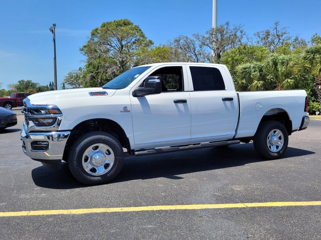 *RAM CERTIFIED*, *ONE OWNER*, *CLEAN CARFAX*, *APPLE CarPlay/ANDROID AUTO*, *BACK UP CAMERA*, *WI-FI HOTSPOT*, *NAVIGATION/NAV/GPS, *USB/HANDS FREE/GPS BLUETOOTH*, 2500 Tradesman, FCA US LLC Certified Pre-Owned Certified, 4D Crew Cab, 6.7L I6, 8-Speed Automatic, 4WD, Bright White Clearcoat, Black Cloth, 115V Auxiliary Front Power Outlet, 12" Touchscreen Display, 2 Way Rear Headrest Seat, 4 Way Front Headrests, 4-Wheel Disc Brakes, 40/20/40 Split Bench Seat, 400W Inverter, 4G LTE Wi-Fi Hot Spot, 6 Speakers, ABS brakes, Air Conditioning, Air Conditioning ATC w/Dual Zone Control, Alexa Built-In, AM/FM radio: SiriusXM, Anti-Spin Differential Rear Axle, Apple CarPlay, Apple CarPlay/Android Auto, Auto-Dimming Rear-View Mirror, Black Exterior Mirrors, Black Wheel Center Hub, Brake assist, Bright Front Bumper, Bright Rear Bumper, Carpet Floor Covering, Center Hub, Chrome Grille Surround, Cloth 40/20/40 Bench Seat, Compass, Connected Travel & Traffic Services, Connectivity - US/Canada, Dash Pass Thru Wire Circuits, Delay-off headlights, Disassociated Touchscreen Display, Driver door bin, Dual front impact airbags, Dual front side impact airbags, Electronic Stability Control, Emergency Vehicle Alert System (EVAS), Engine Block Heater, Exterior 115V AC Outlet, Exterior Mirrors Courtesy Lamps, Exterior Mirrors w/Heating Element, Exterior Mirrors w/Supplemental Signals, Front & Rear Floor Mats, Front anti-roll bar, Front Armrest w/Cupholders, Front Center Armrest w/Storage, Front fog lights, Front reading lights, Fully automatic headlights, Global Telematics Box Module (TBM), Google Android Auto, GPS Antenna Input, GPS Navigation, HD Radio, Heavy Duty Vinyl 40/20/40 Split Bench Seat, I/P Mounted Auxiliary Switches, Illuminated entry, Integrated Voice Command w/Bluetooth, Low tire pressure warning, Manual Adjust 4-Way Driver Seat, Manual Adjust 4-Way Front Passenger Seat, Manual Folding Exterior Mirrors, Manual Telescoping Mirrors, Manufacturer's Statement of Origin, Matte Black Mesh Grille w/Chrome, Mirror Running Lights, Mopar Black Tubular Side Steps, Occupant sensing airbag, Off-Road Info Pages, Outside temperature display, Overhead airbag, Overhead console, Panic alarm, ParkSense Front/Rear Park Assist System, ParkView Rear Back-Up Camera, Passenger door bin, Passenger vanity mirror, Power Adjust Mirrors, Power Adjustable Convex Aux Mirrors, Power Heated Folding Telescope Mirrors, Power steering, Power windows, Quick Order Package 24A Tradesman, Radio data system, Radio: Uconnect 5 Nav w/12.0" Display, Radio: Uconnect 5 w/8.4" Display, Rear anti-roll bar, Rear Folding Seat, Rear Power Sliding Window, Rear step bumper, Rear window defroster, Remote keyless entry, Remote USB Port - Charge Only, Selectable Tire Fill Alert, SiriusXM Radio Service, SiriusXM w/360L, Speed control, Storage Tray, Tachometer, Tilt steering wheel, Tinted Acoustic Windshield Glass, Traction control, Tradesman Level 2 Equipment Group, Trailer Tow Pages, Variably intermittent wipers, Voltmeter, Wheels: 17" x 7.5" Black Steel Styled, Wheels: 18" x 8.0" Steel Chrome Clad, 2500 Tradesman, 4D Crew Cab, 6.7L I6, 8-Speed Automatic, 4WD, Bright White Clearcoat, Black Cloth.