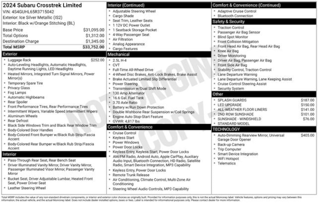 This vehicle has been meticulously maintained and is backed by the manufacturer's warranty, ensuring peace of mind and confidence in your purchase. With only 5,476 miles on the odometer, this Crosstrek Limited is a true gem, offering the perfect blend of capability, comfort, and technology.