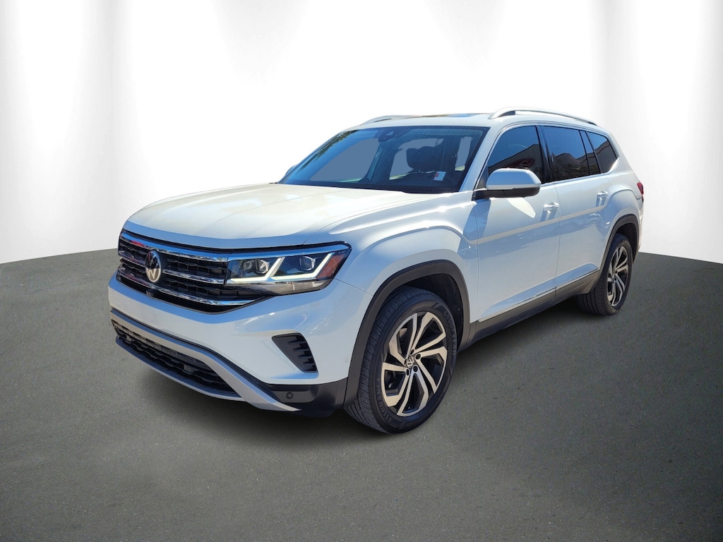 2021 Volkswagen Atlas SEL Premium SEL Premium CPO GO Certified, 12 Speakers, 3.60 Axle Ratio, 3rd row seats: split-bench, 4-Wheel Disc Brakes, ABS brakes, Air Conditioning, Alloy wheels, Auto High-beam Headlights, Auto-dimming Rear-View mirror, Automatic temperature control, Brake assist, Bumpers: body-color, Compass, Delay-off headlights, Driver door bin, Driver vanity mirror, Dual front impact airbags, Dual front side impact airbags, Electronic Stability Control, Emergency communication system: VW Car-Net services (capabilities require enrollment or subscription), Four wheel independent suspension, Front anti-roll bar, Front Bucket Seats, Front Center Armrest, Front dual zone A/C, Front fog lights, Front reading lights, Fully automatic headlights, Heated door mirrors, Heated front seats, Heated rear seats, Heated steering wheel, Htd/Actively Ventilated Comfort Front Sport Seats, Illuminated entry, Leather Shift Knob, Low tire pressure warning, Memory seat, Navigation System, Occupant sensing airbag, Outside temperature display, Overhead airbag, Overhead console, Panic alarm, Passenger door bin, Passenger vanity mirror, Perforated Vienna Leather Seating Surfaces, Power door mirrors, Power driver seat, Power Liftgate, Power moonroof, Power passenger seat, Power steering, Power windows, Radio data system, Rain sensing wipers, Rear air conditioning, Rear anti-roll bar, Rear audio controls, Rear reading lights, Rear seat center armrest, Rear window defroster, Rear window wiper, Remote keyless entry, Roof rack: rails only, Security system, Speed control, Speed-sensing steering, Split folding rear seat, Spoiler, Standard Suspension, Steering wheel mounted audio controls, Tachometer, Telescoping steering wheel, Tilt steering wheel, Traction control, Trip computer, Turn signal indicator mirrors, Variably intermittent wipers, Ventilated front seats, Wheels: 20 5-Spoke 2-Tone Machined Alloy.