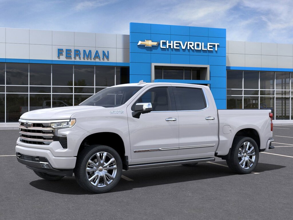 2022 Chevrolet Silverado 1500 High Country High Country EcoTec3 5.3L V8 10-Speed Automatic 10-Speed Automatic, 4WD, Jet Black Leather, 10-Way Power Driver Seat w/Lumbar, 10-Way Power Passenger Seat Adjuster w/Lumbar, 12.3 Multicolor Reconfigurable Digital Display, 120-Volt Bed Mounted Power Outlet, 120-Volt Instrument Panel Power Outlet, 170 Amp Alternator, 2 USB Data Ports, 2nd Row Heated Outboard Seats, 3.23 Rear Axle Ratio, 4-Wheel Disc Brakes, 7 Speakers, ABS brakes, Adaptive Ride Control Suspension, Air Conditioning, All-Weather Floor Liner (LPO), Alloy wheels, AM/FM radio: SiriusXM with 360L, Apple CarPlay/Android Auto, Auto High-beam Headlights, Auto-dimming door mirrors, Auto-Dimming Inside Rear-View Mirror, Auto-dimming Rear-View mirror, Auto-Locking Rear Differential, Automatic Emergency Braking, Automatic temperature control, Bed View Camera, Bluetooth® For Phone, Body-Color Painted Mirror Caps, Bodyside moldings, Brake assist, Bumpers: body-color, Chevrolet Connected Access Capable, Chevytec Spray-On Black Bedliner, Chrome Assist Steps, Chrome Recovery Hooks, Color-Keyed Carpeting Floor Covering, Compass, Deep-Tinted Glass, Delay-off headlights, Driver door bin, Driver Memory, Driver vanity mirror, Dual Exhaust w/Polished Outlets, Dual front impact airbags, Dual front side impact airbags, Dual Rear USB Ports (Charge Only), Electric Rear-Window Defogger, Electrical Steering Column Lock, Electronic Cruise Control, Electronic Stability Control, Electronic Transmission Range Selector Shifter, Floor Mounted Center Console, Following Distance Indicator, Forward Collision Alert, Front anti-roll bar, Front Black Bowtie Emblem (LPO), Front Bucket Seats, Front Carpeted Floor Mats, Front Center Armrest, Front dual zone A/C, Front fog lights, Front LED Fog Lamps, Front Pedestrian Braking, Front Rainsensing Wipers, Front reading lights, Front wheel independent suspension, Fully automatic headlights, Garage door transmitter, Genuine wood console insert, Genuine wood dashboard insert, Genuine wood door panel insert, HD Surround Vision, Heated door mirrors, Heated Driver & Front Outboard Passenger Seats, Heated front seats, Heated rear seats, Heated Steering Wheel, Heated steering wheel, High Capacity Suspension Package, High Country Premium Package, Hitch Guidance, Hitch Guidance w/Hitch View, Illuminated entry, Integrated Trailer Brake Controller, IntelliBeam Automatic High Beam On/Off, Keyless Open & Start, Lane Keep Assist w/Lane Departure Warning, Leather Wrapped Steering Wheel, LED Cargo Area Lighting, Low tire pressure warning, Memory seat, Not Equipped w/Dynamic Fuel Management, Not Equipped w/Steering Column Lock, Occupant sensing airbag, OnStar & Chevrolet Connected Services Capable, Outside Heated Power-Adjustable Mirrors, Outside temperature display, Overhead airbag, Overhead console, Panic alarm, Passenger door bin, Passenger vanity mirror, Perforated Leather Seat Trim, Perimeter Lighting, Power door mirrors, Power driver seat, Power Front Passenger Windows w/Express Up/Down, Power Front Windows w/Driver Express Up/Down, Power passenger seat, Power Rear Windows w/Express Down, Power Sliding Rear Window w/Rear Defogger, Power steering, Power Sunroof, Power Tailgate, Power Tilt & Telescoping Steering Column, Power windows, Power-Retractable Assist Steps, Preferred Equipment Group 3LZ, Premium audio system: Chevrolet Infotainment 3 Premium, Premium Bose 7-Speaker Sound System, Radio data system, Radio: Chevrolet Infotainment 3 Premium System, Rain sensing wipers, Rear Carpeted Floor Mats, Rear Cross Traffic Alert-Braking, Rear Pedestrian Detection, Rear reading lights, Rear seat center armrest, Rear step bumper, Rear Wheelhouse Liners, Rear window defroster, Remote keyless entry, Remote Vehicle Starter System, Safety Alert Seat, Security system, SiriusXM w/360L, Speed control, Speed-sensing steering, Split folding re