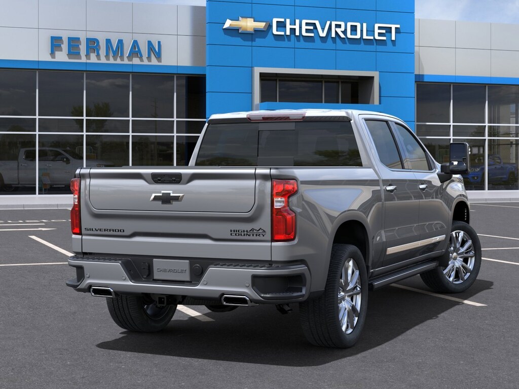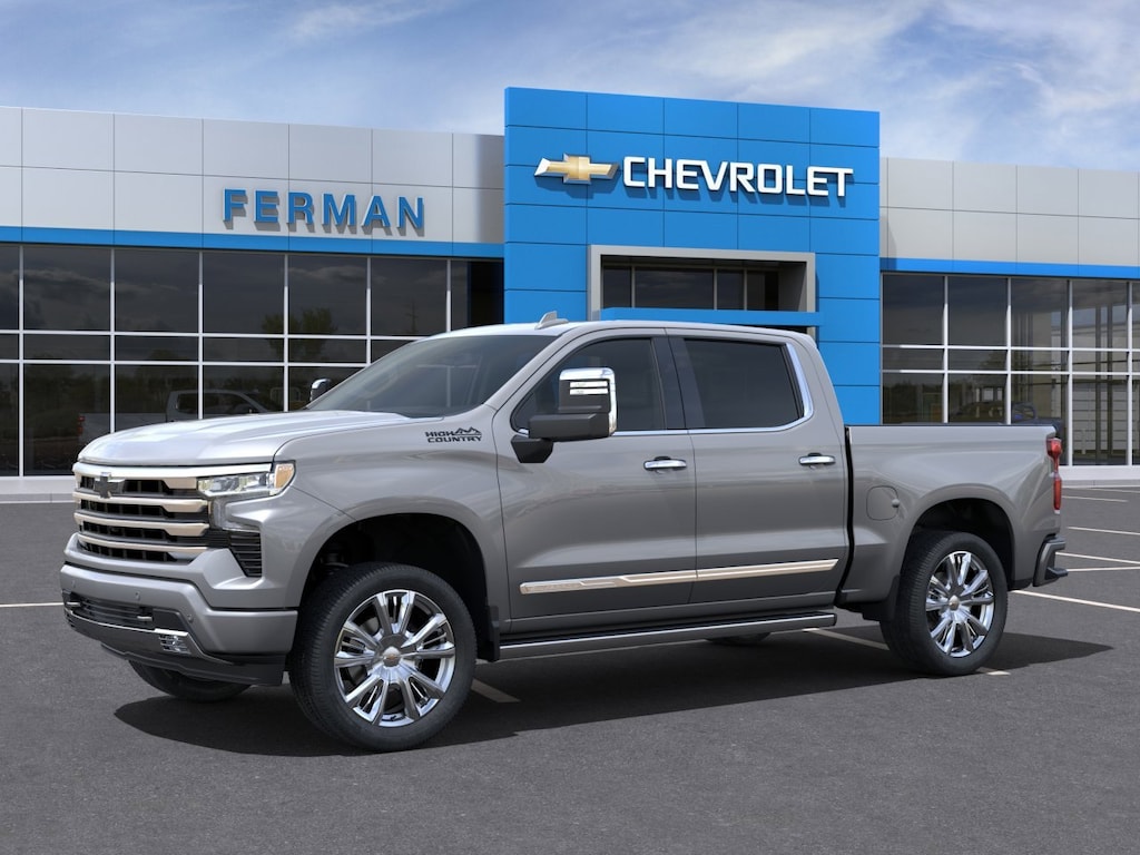2024 Chevrolet Silverado 1500 High Country High Country EcoTec3 5.3L V8 10-Speed Automatic 10-Speed Automatic, 4WD, Jet Black Leather, 10-Way Power Driver Seat w/Lumbar, 10-Way Power Passenger Seat Adjuster w/Lumbar, 12.3 Multicolor Reconfigurable Digital Display, 120-Volt Bed Mounted Power Outlet, 120-Volt Interior Power Outlet, 170 Amp Alternator, 2 USB Data Ports, 2nd Row Heated Outboard Seats, 3.23 Rear Axle Ratio, 4-Wheel Disc Brakes, 7 Speakers, ABS brakes, Adaptive Cruise Control, Adaptive Ride Control Suspension, Air Conditioning, All-Weather Floor Liner (LPO), Alloy wheels, AM/FM radio: SiriusXM with 360L, Auto High-beam Headlights, Auto-dimming door mirrors, Auto-Dimming Inside Rear-View Mirror, Auto-dimming Rear-View mirror, Auto-Locking Rear Differential, Automatic temperature control, Bed View Camera, Black Name Plates (LPO), Bluetooth® For Phone, Body-Color Painted Mirror Caps, Bodyside moldings, Brake assist, Bumpers: body-color, Chevrolet Connected Access Capable, Chevytec Spray-On Black Bedliner, Chrome Assist Steps, Chrome Mirror Caps, Chrome Recovery Hooks, Color-Keyed Carpeting Floor Covering, Compass, Dark Essentials Package (LPO), Deep-Tinted Glass, Delay-off headlights, Driver door bin, Driver Memory, Driver vanity mirror, Dual Exhaust w/Polished Outlets, Dual front impact airbags, Dual front side impact airbags, Dual Rear USB Ports (Charge Only), Electric Rear-Window Defogger, Electrical Steering Column Lock, Electronic Stability Control, Electronic Transmission Range Selector Shifter, Enhanced Automatic Emergency Braking, EZ Lift Power Lock & Release Tailgate, Floor Mounted Center Console, Following Distance Indicator, Forward Collision Alert, Front anti-roll bar, Front Black Bowtie Emblem (LPO), Front Bucket Seats, Front Carpeted Floor Mats, Front Center Armrest, Front dual zone A/C, Front fog lights, Front LED Fog Lamps, Front Pedestrian Braking, Front Rain-Sensing Wipers, Front reading lights, Front wheel independent suspension, Fully automatic headlights, Garage door transmitter, Genuine wood console insert, Genuine wood dashboard insert, Genuine wood door panel insert, HD Surround Vision, Heated door mirrors, Heated Driver & Front Outboard Passenger Seats, Heated front seats, Heated rear seats, Heated Steering Wheel, Heated steering wheel, High Capacity Suspension Package, High Country Premium Package, Hitch Guidance, Hitch Guidance w/Hitch View, Illuminated entry, In-Vehicle Trailering System App, Integrated Trailer Brake Controller, IntelliBeam Automatic High Beam On/Off, Keyless Open & Start, Lane Keep Assist w/Lane Departure Warning, LED Cargo Area Lighting, Low tire pressure warning, Memory seat, Multi-Flex Tailgate, Occupant sensing airbag, OnStar & Chevrolet Connected Services Capable, Outside Heated Power-Adjustable Mirrors, Outside temperature display, Overhead airbag, Overhead console, Panic alarm, Passenger door bin, Passenger vanity mirror, Perforated Leather Seat Trim, Perimeter Lighting, Power door mirrors, Power driver seat, Power Front Passenger Windows w/Express Up/Down, Power Front Windows w/Driver Express Up/Down, Power passenger seat, Power Rear Windows w/Express Down, Power Sliding Rear Window w/Rear Defogger, Power steering, Power Sunroof, Power Tailgate, Power Tilt & Telescoping Steering Column, Power windows, Power-Retractable Assist Steps, Preferred Equipment Group 3LZ, Premium audio system: Chevrolet Infotainment 3 Premium, Premium Bose 7-Speaker Sound System, Pwr-Adjustable Vertical Trailering Outside Mirrors, Radio data system, Radio: Chevrolet Infotainment 3 Premium System, Rain sensing wipers, Rear Carpeted Floor Mats, Rear Cross Traffic Braking, Rear Pedestrian Alert, Rear reading lights, Rear seat center armrest, Rear step bumper, Rear Wheelhouse Liners, Rear window defroster, Remote keyless entry, Remote Vehicle Starter System, Safety Alert Seat, Security syste