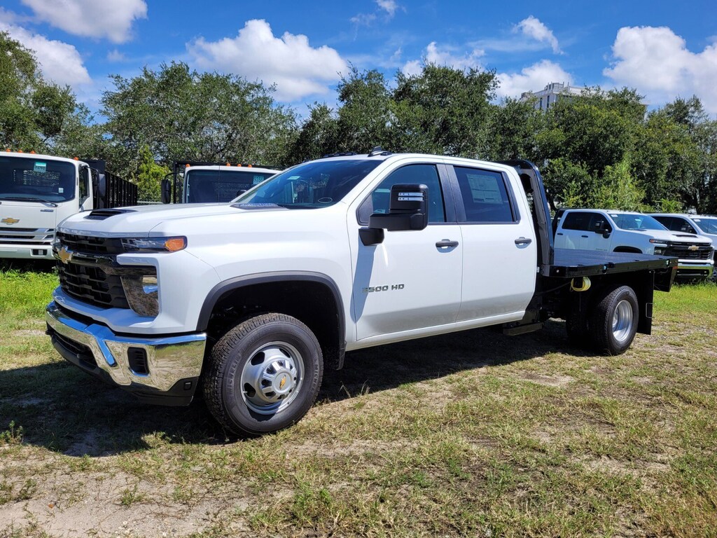 2024 Chevrolet Silverado 3500HD Work Truck Work Truck Duramax 6.6L V8 Turbodiesel 10-Speed Automatic 10-Speed Automatic, Jet Black Vinyl, 120-Volt (400 Watts) Interior Power Outlet, 17 Painted Steel Wheels, 170 Amp Alternator, 220 Amp Alternator, 3.5 Diagonal Monochromatic Display DIC, 4-Way Manual Driver Seat Adjuster, 4-Way Manual Passenger Seat Adjuster, 4-Wheel Disc Brakes, 40 Gallon (151L) Rear Only Fuel Tank, 6 Speakers, 6-Speaker Audio System Feature, ABS brakes, Air Conditioning, AM/FM radio, Apple CarPlay/Android Auto, Auto High-beam Headlights, Auto-Dimming Inside Rear-View Mirror, Black Front Bumper, Black Mirror Caps, Bluetooth® For Phone, Brake assist, Compass, Compass Located In Instrument Cluster, Deep-Tinted Glass, Delay-off headlights, Driver door bin, Dual front impact airbags, Dual front side impact airbags, Dual Rear USB Ports (Charge Only), Dual rear wheels, Electric Rear-Window Defogger, Electronic Stability Control, Engine Block Heater, Exhaust Brake, Front 40/20/40 Split-Bench Seat, Front anti-roll bar, Front Center Armrest w/Storage, Front Chrome Bumper, Front Grille Bar w/Black Mesh Inserts, Front License Plate Kit, Front reading lights, Front wheel independent suspension, Fully automatic headlights, Heavy-Duty 80 Amp-Hr Battery, High-Visibility Molded in Black Outside Mirrors, Illuminated entry, Low tire pressure warning, Manual Tilt Inside Rearview Mirror, Manual Tilt-Wheel Steering Column, Occupant sensing airbag, OnStar & Chevrolet Connected Services Capable, Outside temperature display, Overhead airbag, Overhead console, Panic alarm, Passenger door bin, Passenger vanity mirror, Perimeter Lighting, Power Rear Windows w/Express Down, Power steering, Power windows, Power-Adjustable Outside Mirrors, Preferred Equipment Group 1WT, Premium audio system: Chevrolet Infotainment 3, Radio: Chevrolet Infotainment 3 System, Rear 60/40 Folding Bench Seat (Folds Up), Rear reading lights, Remote keyless entry, Rubberized-Vinyl Floor Covering, Solar Absorbing Tinted Glass, Split folding rear seat, Steering Wheel Mounted Electronic Cruise Control, Suspension Package, Tachometer, Tilt steering wheel, Traction control, Trip computer, Upfitter Switch Kit (5), Variably intermittent wipers, Vinyl Seat Trim, Voltmeter, Winter Grille Cover, WT Convenience Package, 10-Speed Automatic, Jet Black Vinyl.