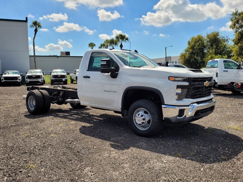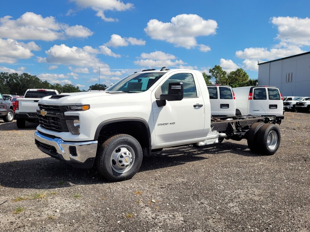 2024 Chevrolet Silverado 3500HD Work Truck Work Truck Duramax 6.6L V8 Turbodiesel 10-Speed Automatic 10-Speed Automatic, 4WD, Jet Black Vinyl, 120-Volt (400 Watts) Interior Power Outlet, 17 Painted Steel Wheels, 170 Amp Alternator, 2 Speakers, 2-Speaker Audio System Feature, 2-Speed Electronic Shift Transfer Case, 220 Amp Alternator, 3.5 Diagonal Monochromatic Display DIC, 4-Way Manual Driver Seat Adjuster, 4-Way Manual Passenger Seat Adjuster, 4-Wheel Disc Brakes, 40 Gallon (151L) Rear Only Fuel Tank, ABS brakes, Air Conditioning, AM/FM radio, Apple CarPlay/Android Auto, Auto High-beam Headlights, Black Front Bumper, Black Mirror Caps, Bluetooth® For Phone, Brake assist, Compass, Compass Located In Instrument Cluster, Deep-Tinted Glass, Delay-off headlights, Driver door bin, Dual front impact airbags, Dual front side impact airbags, Dual rear wheels, Electric Rear-Window Defogger, Electronic Stability Control, Engine Block Heater, Exhaust Brake, Front 40/20/40 Split-Bench Seat, Front anti-roll bar, Front Center Armrest w/Storage, Front Chrome Bumper, Front Grille Bar w/Black Mesh Inserts, Front reading lights, Front wheel independent suspension, Fully automatic headlights, Heavy-Duty 80 Amp-Hr Battery, Illuminated entry, Low tire pressure warning, Manual Tilt Inside Rearview Mirror, Manual Tilt-Wheel Steering Column, Occupant sensing airbag, OnStar & Chevrolet Connected Services Capable, Outside temperature display, Overhead airbag, Overhead console, Panic alarm, Passenger door bin, Passenger vanity mirror, Power steering, Power windows, Preferred Equipment Group 1WT, Premium audio system: Chevrolet Infotainment 3, Radio: Chevrolet Infotainment 3 System, Remote keyless entry, Rubberized-Vinyl Floor Covering, Solar Absorbing Tinted Glass, Steering Wheel Mounted Electronic Cruise Control, Suspension Package, Tachometer, Tilt steering wheel, Traction control, Trip computer, Upfitter Switch Kit (5), Variably intermittent wipers, Vinyl Seat Trim, Voltmeter, Winter Grille Cover, WT Convenience Package, 10-Speed Automatic, 4WD, Jet Black Vinyl.