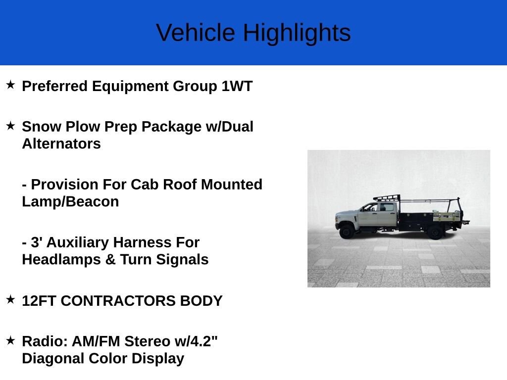 This Chevrolet Silverado MD delivers a Turbocharged Diesel V8 6.6L/402 engine powering this Automatic transmission. WORK TRUCK PREFERRED EQUIPMENT GROUP includes standard equipment, WIRING HARNESS ACCESSORY FOR 9L7 WIRING TO JUNCTION BLOCK Includes connector and blunt cut wires, WHEELS, 19.5" X 6.75", STEEL, BLACK PAINTED, 8-HOLES, HUB PILOTED (STD).
