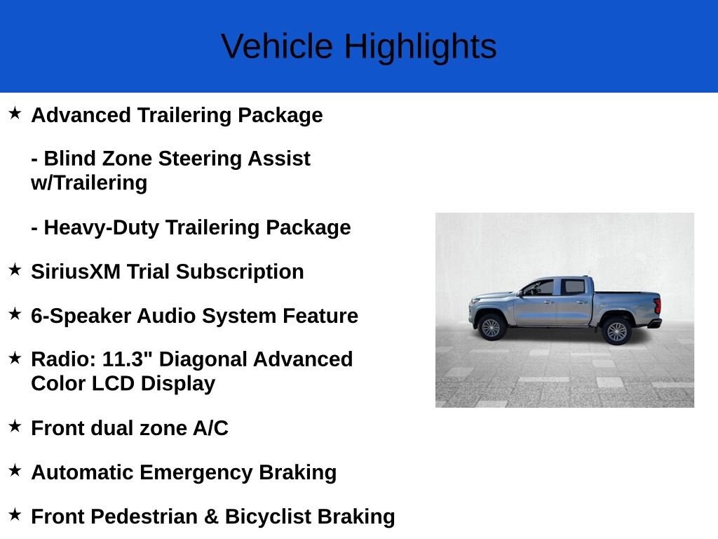 Scores 24 Highway MPG and 19 City MPG! This Chevrolet Colorado boasts a Turbocharged Gas I4 2.7L/ engine powering this Automatic transmission. WHEELS, 17" X 8" (43.2 CM X 20.3 CM), ARGENT METALLIC ALUMINUM (STD), TRANSMISSION, 8-SPEED AUTOMATIC (STD), TRAILERING PACKAGE, HEAVY-DUTY includes trailer hitch and 7-pin connector (Includes (JL1) Trailer brake controller..