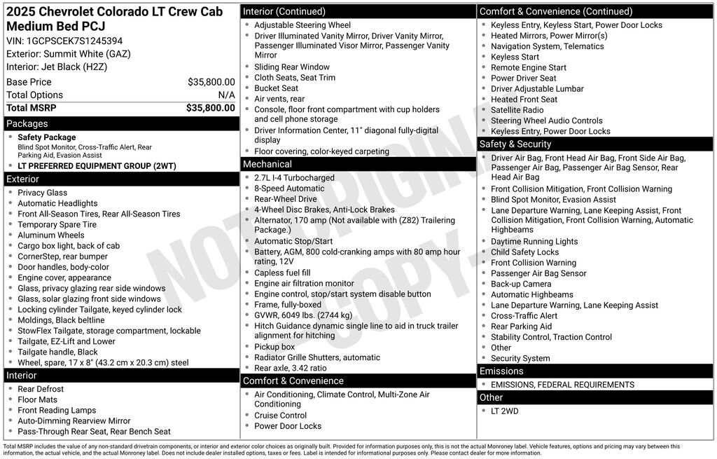 SEATS, FRONT BUCKET (STD), REAR AXLE, 3.42 RATIO, LT PREFERRED EQUIPMENT GROUP includes standard equipment, LT 2WD, JET BLACK, CLOTH SEAT TRIM, ENGINE, TURBOMAX (310 hp [231 kW] @ 5600 rpm, 430 lb-ft of torque [583 Nm] @ 3000 rpm) (STD), 11.3" DIAGONAL ADVANCED COLOR LCD DISPLAY WITH GOOGLE BUILT-IN compatibility including navigation capability, connected apps, personalized profiles for each driver's settings, Natural Voice Recognition and Phone Integration for Wireless Apple CarPlay/Wireless Android Auto for compatible phones (STD), Wireless phone projection, for Apple CarPlay and Android Auto, Windshield, solar absorbing, Windows, power rear, express down.