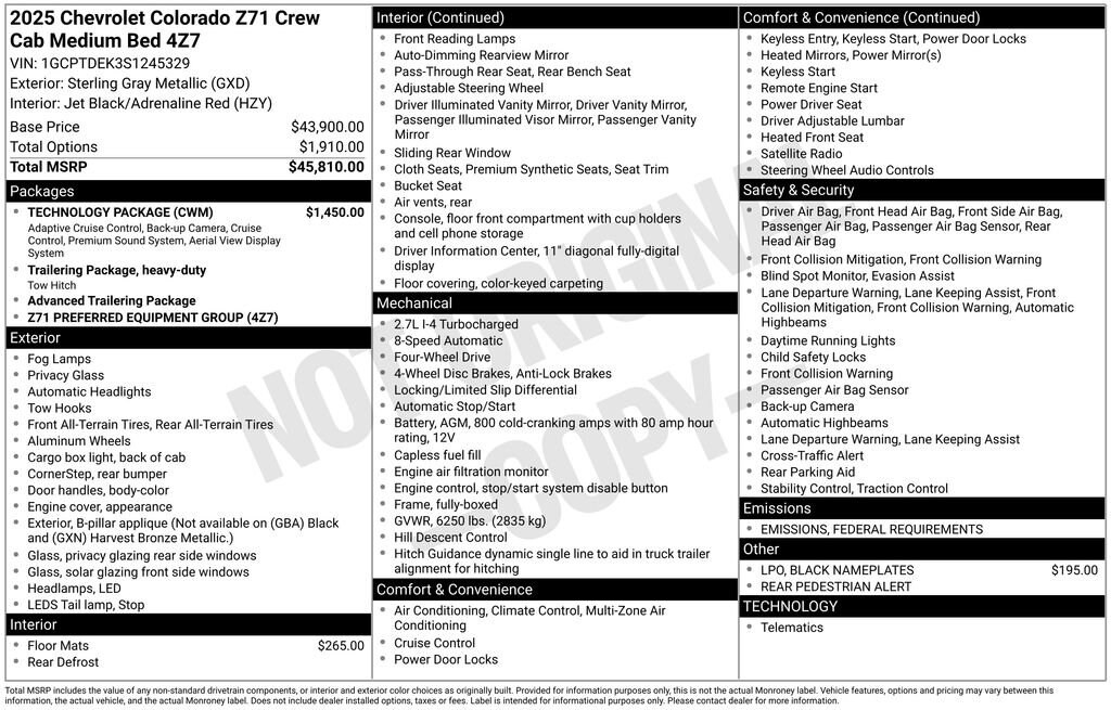 This Chevrolet Colorado Features the Following Options