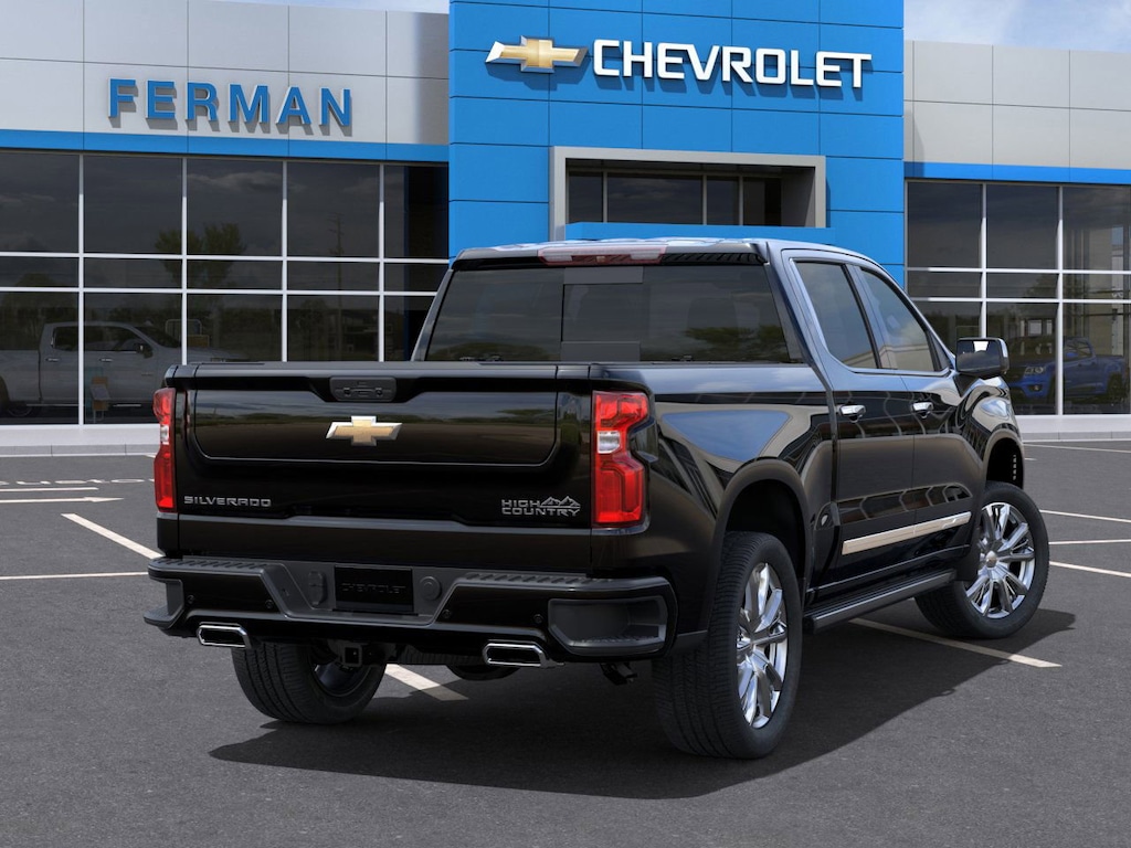 2025 Chevrolet Silverado 1500 High Country High Country 3.0L I6 10-Speed Automatic 10-Speed Automatic, 4WD, Jet Black Leather, 10-Way Power Driver Seat w/Lumbar, 10-Way Power Passenger Seat Adjuster w/Lumbar, 12.3 Multicolor Reconfigurable Digital Display, 120-Volt Bed Mounted Power Outlet, 120-Volt Interior Power Outlet, 15 Diagonal Multicolor Head-Up Display, 170 Amp Alternator, 2 USB Data Ports, 220 Amp Alternator, 2nd Row Heated Outboard Seats, 3 Years of OnStar Digital Services/Safety Services, 3.23 Rear Axle Ratio, 4-Wheel Disc Brakes, 7 Speakers, ABS brakes, Adaptive Cruise Control, Adaptive Ride Control Suspension, Air Conditioning, All-Weather Floor Liner (LPO), Alloy wheels, AM/FM radio: SiriusXM with 360L, Apple CarPlay/Android Auto, Auto High-beam Headlights, Auto-dimming door mirrors, Auto-Dimming Inside Rear-View Mirror, Auto-dimming Rear-View mirror, Auto-Locking Rear Differential, Automatic temperature control, Bed View Camera, Bluetooth® For Phone, Body-Color Painted Mirror Caps, Bodyside moldings, Brake assist, Bumpers: body-color, Chevytec Spray-On Black Bedliner, Chrome Assist Steps, Chrome Recovery Hooks, Color-Keyed Carpeting Floor Covering, Compass, Deep-Tinted Glass, Delay-off headlights, Driver door bin, Driver Memory, Driver vanity mirror, Dual Exhaust w/Polished Outlets, Dual front impact airbags, Dual front side impact airbags, Dual Rear USB Ports (Charge Only), Electric Rear-Window Defogger, Electronic Stability Control, Electronic Transmission Range Selector Shifter, Emergency communication system: OnStar, Engine Block Heater, Enhanced Automatic Emergency Braking, EZ Lift Power Lock & Release Tailgate, Floor Mounted Center Console, Following Distance Indicator, Forward Collision Alert, Front anti-roll bar, Front Bucket Seats, Front Carpeted Floor Mats, Front Center Armrest, Front dual zone A/C, Front fog lights, Front LED Fog Lamps, Front Pedestrian Braking, Front Rain-Sensing Wipers, Front reading lights, Front wheel independent suspension, Fully automatic headlights, Garage door transmitter, Genuine wood console insert, Genuine wood dashboard insert, Genuine wood door panel insert, Hard Folding Truck Bed Cover (LPO), HD Surround Vision, Heated door mirrors, Heated Driver & Front Outboard Passenger Seats, Heated front seats, Heated rear seats, Heated Steering Wheel, Heated steering wheel, High Capacity Suspension Package, High Country Premium II Super Cruise Package, High Country Premium Package, Hitch Guidance, Hitch Guidance w/Hitch View, Illuminated entry, In-Vehicle Trailering System App, Integrated Trailer Brake Controller, IntelliBeam Automatic High Beam On/Off, Keyless Open & Start, Lane Keep Assist w/Lane Departure Warning, LED Cargo Area Lighting, Low tire pressure warning, Memory seat, Multi-Flex Tailgate, Occupant sensing airbag, OnStar Services Capable, Outside Heated Power-Adjustable Mirrors, Outside temperature display, Overhead airbag, Overhead console, Panic alarm, Passenger door bin, Passenger vanity mirror, Perforated Leather Seat Trim, Perimeter Lighting, Power door mirrors, Power driver seat, Power Front Passenger Windows w/Express Up/Down, Power Front Windows w/Driver Express Up/Down, Power passenger seat, Power Rear Windows w/Express Down, Power Sliding Rear Window w/Rear Defogger, Power steering, Power Sunroof, Power Tailgate, Power Tilt & Telescoping Steering Column, Power windows, Power-Retractable Assist Steps, Preferred Equipment Group 3LZ, Premium audio system: Chevrolet Infotainment 3 Premium, Premium Bose 7-Speaker Sound System, Radio data system, Radio: Chevrolet Infotainment 3 Premium System, Rain sensing wipers, Rear Camera Mirror, Rear Carpeted Floor Mats, Rear Cross Traffic Braking, Rear Pedestrian Alert, Rear reading lights, Rear seat center armrest, Rear step bumper, Rear Wheelhouse Liners, Rear window defroster, Remote keyless entry, Remote Vehicle Start