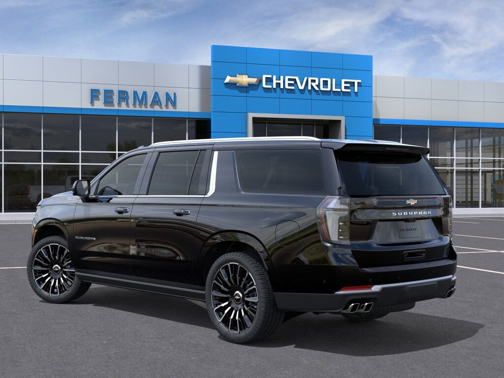 2025 Chevrolet Suburban High Country High Country EcoTec3 6.2L V8 10-Speed Automatic with Overdrive 10 Speakers, 15 Diagonal Multi-Color Head-Up Display, 2-Speed Active Electronic AutoTrac Transfer Case, 3 Years of OnStar Digital Services/Safety Services, 3.23 Rear Axle Ratio, 3rd Row 60/40 Power-Folding Split-Bench, 3rd row seats: split-bench, 4-Way Power Driver Lumbar Seat Adjuster, 4-Way Power Front Passenger Lumbar Seat Adjuster, 4-Wheel Disc Brakes, 8-Way Power Driver Seat Adjuster, 8-Way Power Front Passenger Seat Adjuster, ABS brakes, Adaptive suspension, Advanced Security Package, Advanced Trailering Package, Air Conditioning, Air Ride Adaptive Suspension, Alloy wheels, AM/FM radio: SiriusXM with 360L, Apple CarPlay/Android Auto, Auto High-beam Headlights, Auto-dimming door mirrors, Auto-dimming Rear-View mirror, Auto-leveling suspension, Automatic temperature control, AutoSense Hands-Free Power Liftgate, Black Illuminated Front Bowtie Emblem (LPO), Blind Zone Steering Assist w/Trailering, Bose 10-Speaker Surround w/CenterPoint, Brake assist, Bright Front & Rear Door Sill Plates, Bumpers: body-color, Chrome Door Handles w/Body-Color Strip, Compass, Delay-off headlights, Driver door bin, Driver vanity mirror, Dual Exhaust System, Dual front impact airbags, Dual front side impact airbags, Dual-Pane Power Panoramic Sunroof, Electronic Stability Control, Emergency communication system: OnStar Services capable, Exterior Parking Camera Rear, Extra Capacity Cooling System, Four wheel independent suspension, Front anti-roll bar, Front Bucket Seats, Front Center Armrest, Front dual zone A/C, Front fog lights, Front LED Fog Lamps, Front reading lights, Fully automatic headlights, Garage door transmitter, Glass Breakage Sensor, Heads-Up Display, Heated 2nd Row Outboard Seats, Heated door mirrors, Heated Driver & Front Passenger Seats, Heated front seats, Heated Power-Adjustable Outside Mirrors, Heated rear seats, Heated Steering Wheel, Heated steering wheel, High Country Deluxe, Hill Descent Control, Hitch View w/Pan/Zoom Image Adjustment, Illuminated entry, Illuminated Front & Rear Door Sill Plates (LPO), Illuminated Liftgate Sill Plate (LPO), Illuminated Mirror Chevrolet Emblem (LPO), Illumination Package (LPO), Inside Rearview Auto-Dimming Rear Camera Mirror, Integrated Trailer Brake Controller, LED Headlamps w/LED Daytime Running Lamps, LED Tail Lamps, Low tire pressure warning, Magnetic Ride Control Suspension, Max Trailering Package, Memory seat, Memory Settings, Navigation system: Google built-in compatibility (select service plan required, terms and limitations apply), Occupant sensing airbag, Outside temperature display, Overhead airbag, Overhead console, Panic alarm, Passenger door bin, Passenger vanity mirror, Perforated Heated & Ventilated Seats, Perforated Leather Seating Surfaces, Power door mirrors, Power driver seat, Power Liftgate, Power passenger seat, Power Release 2nd Row Bucket Seats, Power steering, Power Tilt & Telescopic Steering Column, Power windows, Power-Retractable Assist Steps, Power-Sliding Center Floor Console, Preferred Equipment Group 3LZ, Radio data system, Radio: 17.7 Diagonal Advanced Color LCD Display, Rain sensing wipers, Rear air conditioning, Rear anti-roll bar, Rear Power Liftgate, Rear reading lights, Rear Seat Media System, Rear window defroster, Rear window wiper, Remote keyless entry, Security system, Self-Powered Horn Theft-Deterrent Alarm System, SiriusXM w/360L Trial Subscription, Smart Trailer Integration Indicator, Speed control, Speed-sensing steering, Split folding rear seat, Spoiler, Steering wheel memory, Steering wheel mounted audio controls, Super Cruise, Tachometer, Technology & Entertainment Package, Technology Package, Telescoping steering wheel, Tilt steering wheel, Traction control, Trailer Camera Provisions, Trailering Assist Guidelines, Trip computer, Turn signal