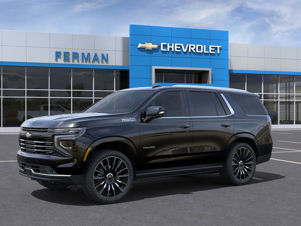 2025 Chevrolet Tahoe High Country High Country EcoTec3 6.2L V8 10-Speed Automatic with Overdrive 4WD, Black Leather, 10 Speakers, 15 Diagonal Multi-Color Head-Up Display, 1st & 2nd Row Color-Keyed Carpeted Floor Mats, 2-Speed Active Electronic AutoTrac Transfer Case, 3 Years of OnStar Digital Services/Safety Services, 3-Spoke Wrapped Steering Wheel, 3.23 Rear Axle Ratio, 3rd Row 60/40 Power-Folding Split-Bench Seat, 3rd row seats: split-bench, 4-Way Power Driver Lumbar Seat Adjuster, 4-Way Power Front Passenger Lumbar Seat Adjuster, 4-Wheel Disc Brakes, 8-Way Power Driver Seat Adjuster, 8-Way Power Front Passenger Seat Adjuster, ABS brakes, Adaptive suspension, Advanced Security Package, Advanced Trailering Package, Air Conditioning, Air Ride Adaptive Suspension, Alloy wheels, AM/FM radio: SiriusXM with 360L, Apple CarPlay/Android Auto, Auto High-beam Headlights, Auto-dimming door mirrors, Auto-dimming Rear-View mirror, Auto-leveling suspension, Automatic temperature control, AutoSense Hands-Free Power Liftgate, Black Illuminated Front Bowtie Emblem (LPO), Blind Zone Steering Assist w/Trailering, Bose 10-Speaker Centerpoint Surround Audio Sys Ft, Brake assist, Bright Front & Rear Door Sill Plates, Bumpers: body-color, Chrome Door Handles w/Body-Color Strip, Color-Keyed Carpeting Floor Covering, Compass, Delay-off headlights, Driver & Front Passenger Heated & Ventilated Seats, Driver door bin, Driver vanity mirror, Dual Exhaust System, Dual front impact airbags, Dual front side impact airbags, Dual-Pane Power Panoramic Sunroof, Electronic Stability Control, Emergency communication system: OnStar and Chevrolet connected services capable, Exterior Parking Camera Rear, Extra Capacity Cooling System, Floor Console, Four wheel independent suspension, Front anti-roll bar, Front Bucket Seats, Front Center Armrest, Front dual zone A/C, Front fog lights, Front LED Fog Lamps, Front Pedestrian & Bicyclist Braking, Front reading lights, Frontal Driver & Outboard Passenger Airbags, Fully automatic headlights, Garage door transmitter, Glass Breakage Sensor, Heads-Up Display, Heated 2nd Row Outboard Seats, Heated door mirrors, Heated Driver & Front Passenger Seats, Heated front seats, Heated rear seats, Heated Steering Wheel, Heated steering wheel, High Country Deluxe, Hill Descent Control, Hitch View w/Pan/Zoom Image Adjustment, Illuminated entry, Illuminated Front & Rear Door Sill Plates (LPO), Illuminated Liftgate Sill Plate (LPO), Illuminated Mirror Chevrolet Emblem (LPO), Illumination Package (LPO), Inside Rearview Auto-Dimming Rear Camera Mirror, Integrated Trailer Brake Controller, LED Headlamps w/LED Daytime Running Lamps, LED Tail Lamps, Low tire pressure warning, Magnetic Ride Control Suspension, Max Trailering Package, Memory seat, Memory Settings, Navigation system: Google built-in compatibility (select service plan required, terms and limitations apply), Occupant sensing airbag, Outside Heated Power-Adjustable Mirrors, Outside temperature display, Overhead airbag, Overhead console, Panic alarm, Passenger door bin, Passenger vanity mirror, Perforated Leather Seat Trim, Power door mirrors, Power driver seat, Power Liftgate, Power passenger seat, Power Release 2nd Row Bucket Seats, Power steering, Power Tilt & Telescopic Steering Column, Power windows, Power-Retractable Assist Steps, Preferred Equipment Group 3LZ, Premium audio system: Chevrolet Infotainment 3 Premium, Radio data system, Radio: 17.7 Diagonal Advanced Color LCD Display, Rain sensing wipers, Rear air conditioning, Rear anti-roll bar, Rear Power Liftgate, Rear reading lights, Rear Seat Media System, Rear window defroster, Rear window wiper, Remote keyless entry, Remote Start, Security system, Set of 4 Wheel Locks (LPO), SiriusXM w/360L Trial Subscription, Smart Trailer Integration Indicator, Speed control, Speed-sensing steering, Split folding rear seat, Spoiler, S