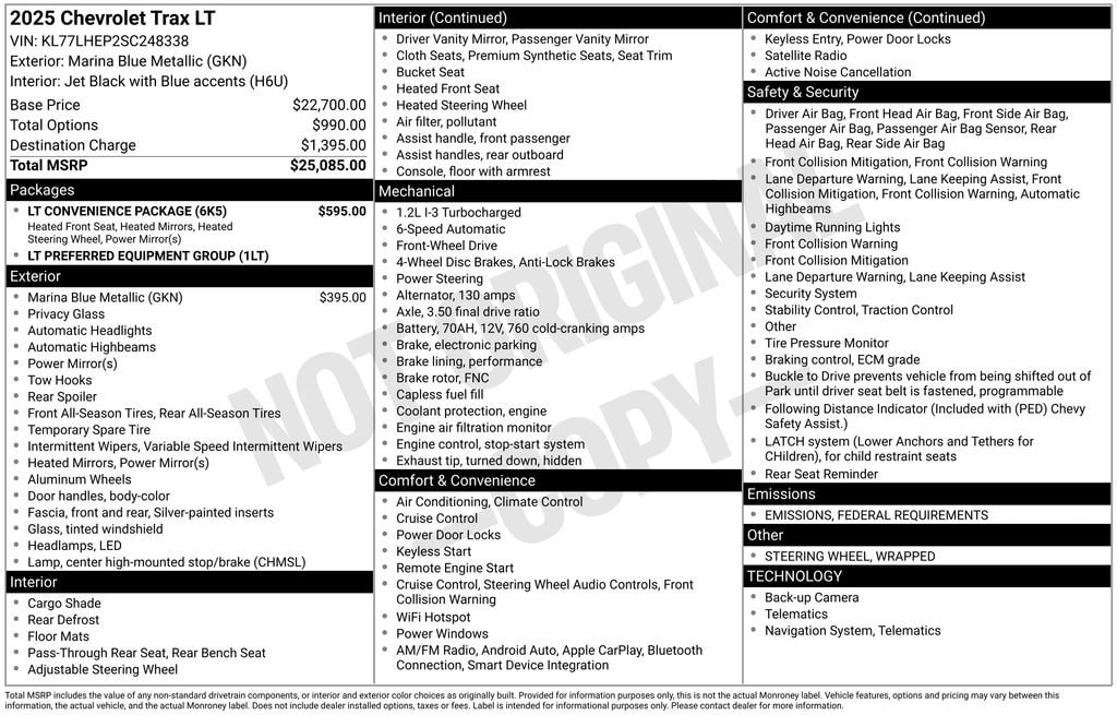 Scores 32 Highway MPG and 28 City MPG! This Chevrolet Trax boasts a Turbocharged Gas 3-Cyl 1.2L/ engine powering this Automatic transmission. Wireless Apple CarPlay/Wireless Android Auto, Wipers, front intermittent, variable speed, Wiper, rear, intermittent.