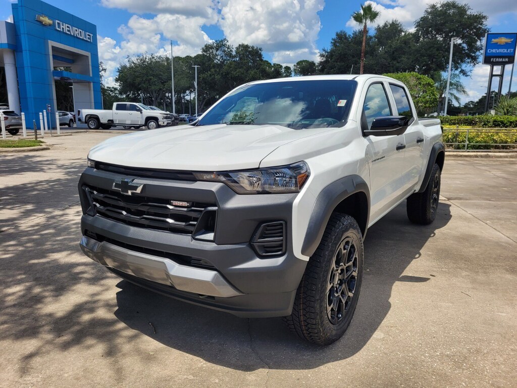 Colorado Trail Boss, 4WD, ABS brakes, Alloy wheels, Compass, Electronic Stability Control, Front dual zone A/C, Heated door mirrors, Illuminated entry, Low tire pressure warning, Remote keyless entry, Traction control, 3.42 Rear Axle Ratio, 4-Way Manual Passenger Seat Adjuster, 4-Wheel Disc Brakes, 6 Speakers, 6-Speaker Audio System Feature, 6-Way Manual Driver Seat Adjuster, Air Conditioning, AM/FM radio: SiriusXM with 360L, Apple CarPlay/Android Auto, Auto High-beam Headlights, Automatic Emergency Braking, Automatic temperature control, Brake assist, Chevy Safety Assist, Cloth Seat Trim, Delay-off headlights, Driver door bin, Driver vanity mirror, Dual front impact airbags, Dual front side impact airbags, Emergency communication system: OnStar, Following Distance Indicator, Forward Collision Alert, Front anti-roll bar, Front Bucket Seats, Front Center Armrest, Front Pedestrian & Bicyclist Braking, Front wheel independent suspension, IntelliBeam Automatic High Beam On/Off, Lane Keep Assist w/Lane Departure Warning, Occupant sensing airbag, Outside temperature display, Overhead airbag, Overhead console, Panic alarm, Passenger door bin, Passenger vanity mirror, Power door mirrors, Power steering, Power windows, Radio data system, Radio: 11.3 Diagonal Advanced Color LCD Display, Rear reading lights, Rear step bumper, Rear window defroster, Security system, SiriusXM w/360L Trial Subscription, Speed control, Speed-sensing steering, Split folding rear seat, Steering Wheel Mounted Audio Controls, Steering wheel mounted audio controls, Tachometer, Tilt steering wheel, Trip computer, Variably intermittent wipers, Wheels: 18 x 8.5 Black High Gloss Aluminum, Wireless Phone Projection, Colorado Trail Boss, 4WD, ABS brakes, Alloy wheels, Compass, Electronic Stability Control, Front dual zone A/C, Heated door mirrors, Illuminated entry, Low tire pressure warning, Remote keyless entry, Traction control.