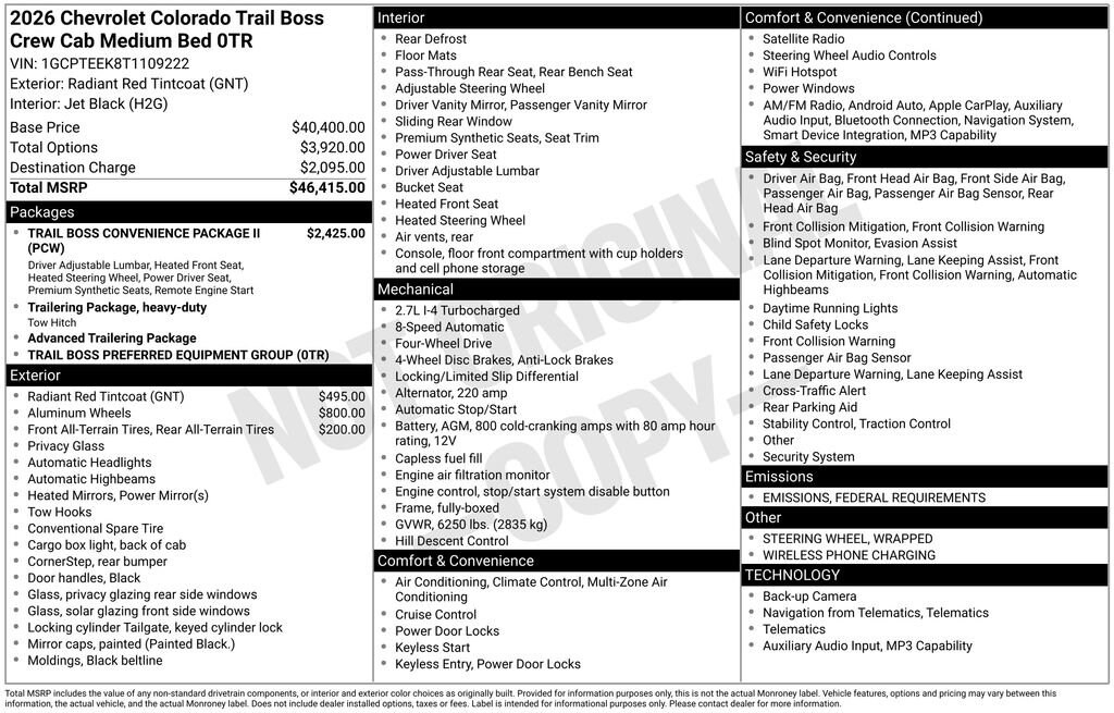 This Chevrolet Colorado Features the Following Options