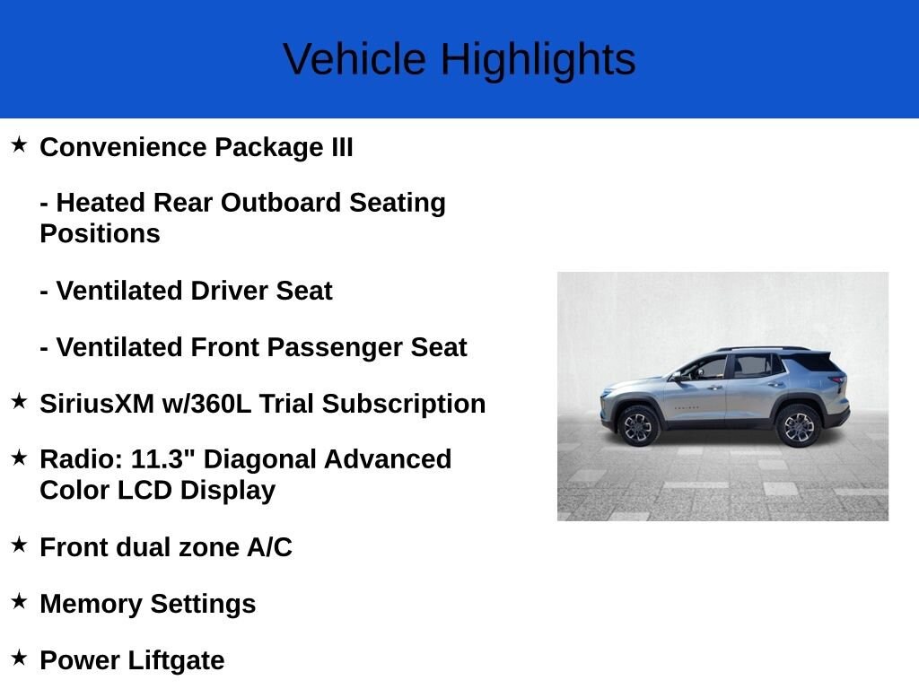 LPO, FLOOR LINER PACKAGE Includes (RIA) All-weather floor liners, LPO, (RIS) Second Row All-weather mat, LPO and (VLI) Cargo mat, LPO., CONVENIENCE PACKAGE III includes (A7K) 8-way power front passenger seat adjuster, (KU1) ventilated driver seat (KU3) ventilated front passenger seat, (KA6) heated rear outboard seats, (AT9) 2-way power front passenger lumbar seat adjuster and (A45) memory settings , SEATS, HEATED, REAR, OUTBOARD POSITIONS, SEATS, FRONT BUCKET (STD), SEAT, VENTILATED FRONT PASSENGER, SEAT, VENTILATED DRIVER, SEAT ADJUSTER, FRONT PASSENGER 8-WAY POWER, SEAT ADJUSTER, FRONT PASSENGER 2-WAY POWER LUMBAR, MEMORY SETTINGS includes presets for seat adjuster, outside rearview mirror and driver personalization, MAPLE SUGAR, SUEDED MICROFIBER SEAT TRIM.