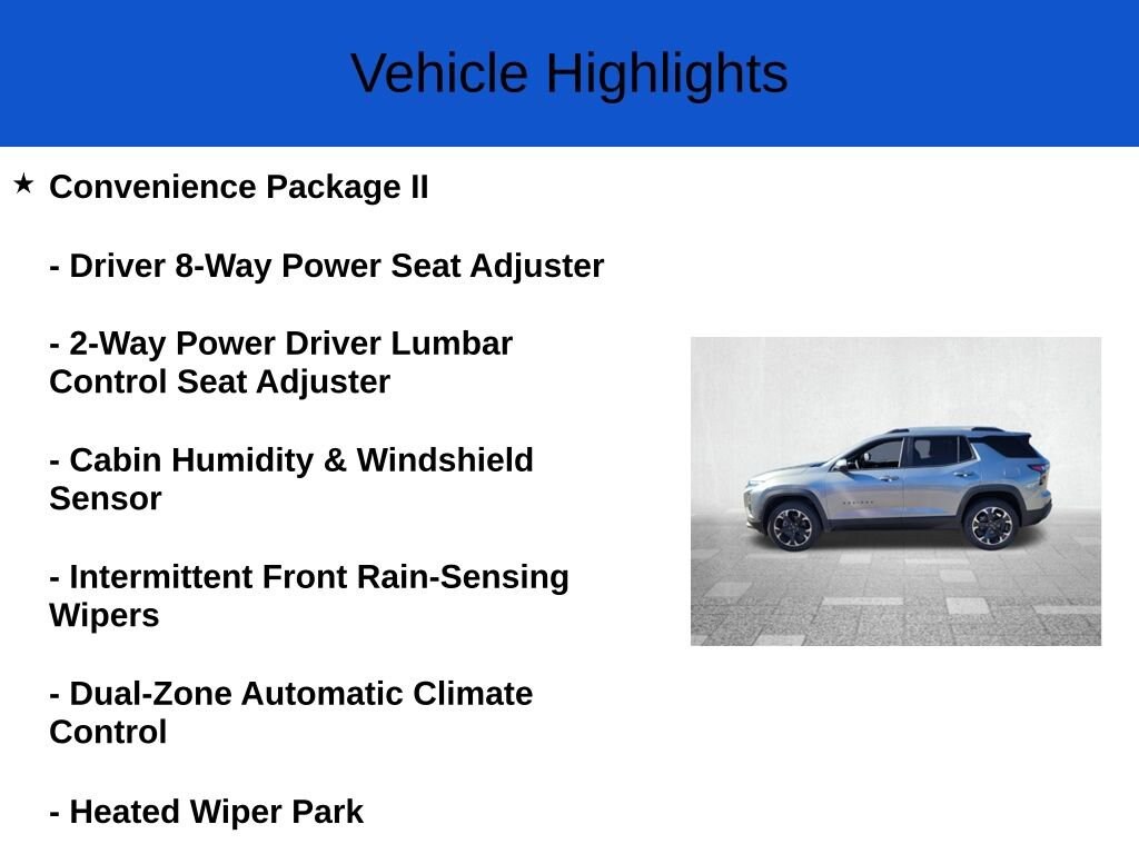 This Chevrolet Equinox boasts a Turbocharged Gas I4 1.5L/ engine powering this Automatic transmission. WIRELESS PHONE CHARGING, FOR PORTABLE DEVICES, WIPERS, FRONT RAIN-SENSING, INTERMITTENT, WHEELS, 19" (48.3 CM) BLACK MACHINED-FACE ALUMINUM.