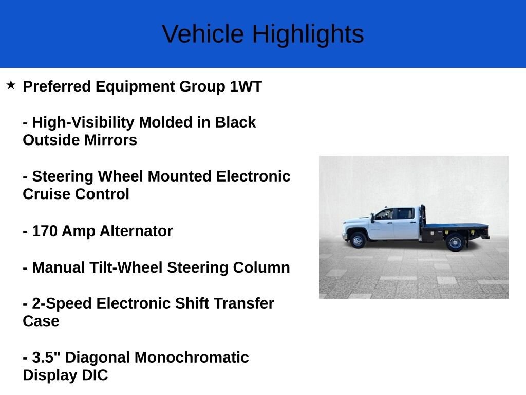 This Chevrolet Silverado 3500HD CC boasts a Turbocharged Diesel V8 6.6L/ engine powering this Automatic transmission. WT CONVENIENCE PACKAGE includes (AKO) tinted windows, (C49) rear-window defogger and (DBG) power trailer mirrors with heated upper glass and manual extending/folding, WORK TRUCK PREFERRED EQUIPMENT GROUP includes standard equipment, WINTER GRILLE COVER.