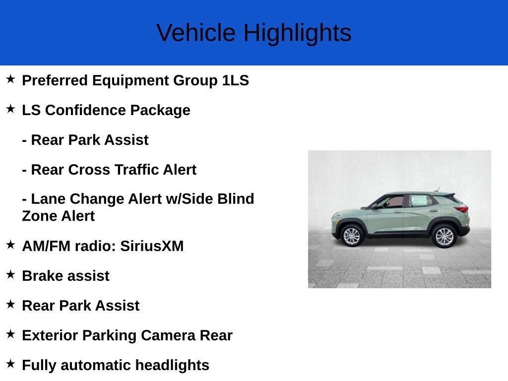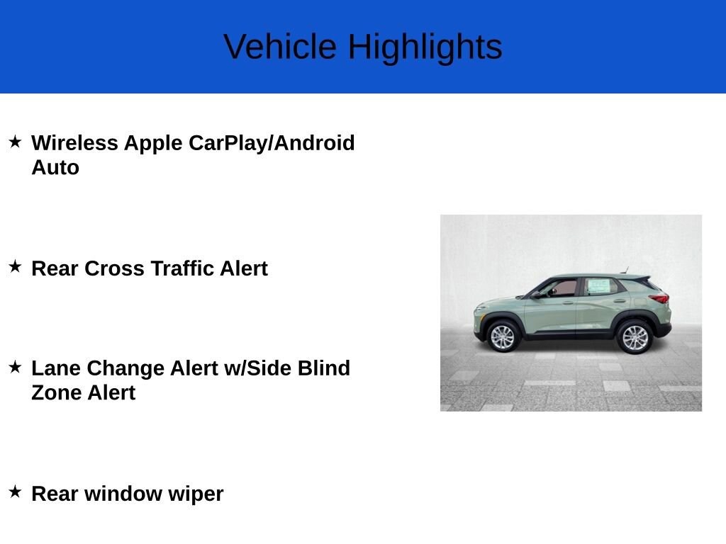 Delivers 33 Highway MPG and 29 City MPG! This Chevrolet Trailblazer boasts a Gas I3 1.3L/ engine powering this Variable transmission. WHEELS, 17" (43.2 CM) SILVER-PAINTED ALUMINUM (STD), TRANSMISSION, CONTINUOUSLY VARIABLE (CVT) (STD), TRAILERING PROVISIONS, WIRING.