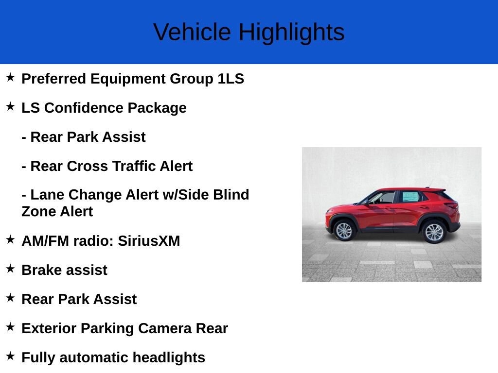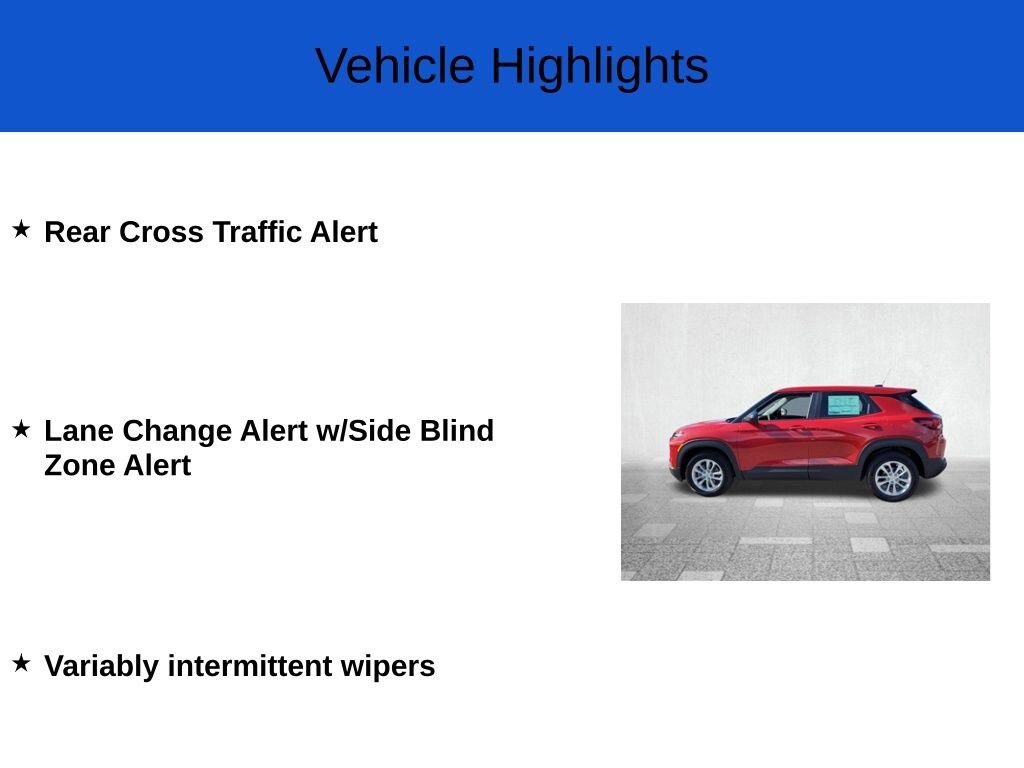 Delivers 33 Highway MPG and 29 City MPG! This Chevrolet Trailblazer delivers a Gas I3 1.3L/ engine powering this Variable transmission. WHEELS, 17" (43.2 CM) SILVER-PAINTED ALUMINUM (STD), TRANSMISSION, CONTINUOUSLY VARIABLE (CVT) (STD), TRAILERING PROVISIONS, WIRING.