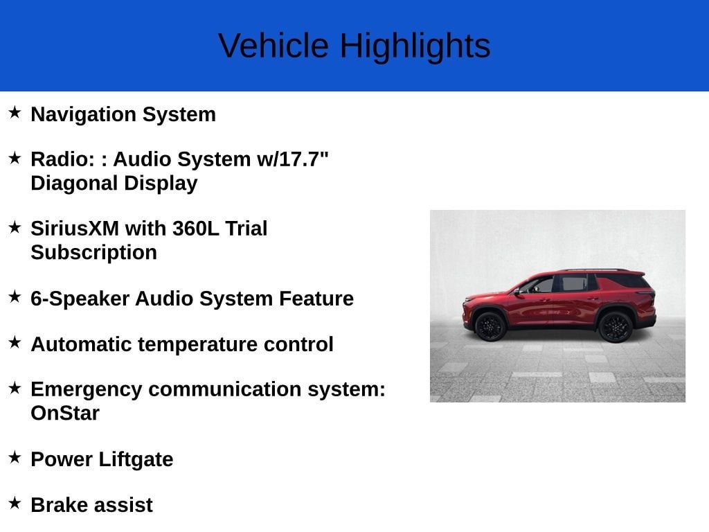 The 2026 Traverse LT 1LT is designed to keep you connected, comfortable, and confident on the road. Enjoy the convenience of automatic climate control, heated front seats, and a heated steering wheel. Stay entertained with the 6-speaker audio system and SiriusXM with 360L trial subscription.