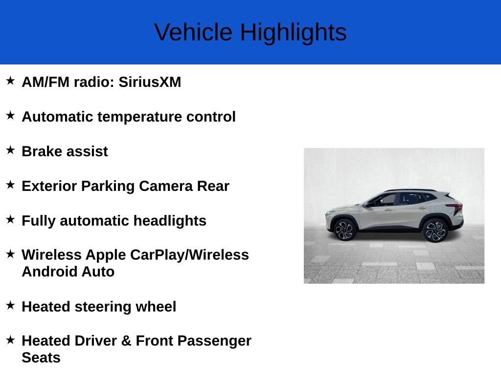 Scores 32 Highway MPG and 28 City MPG! This Chevrolet Trax delivers a Turbocharged Gas 3-Cyl 1.2L/ engine powering this Automatic transmission. Wireless Apple CarPlay/Wireless Android Auto, Wipers, front intermittent, variable speed, Wiper, rear, intermittent.