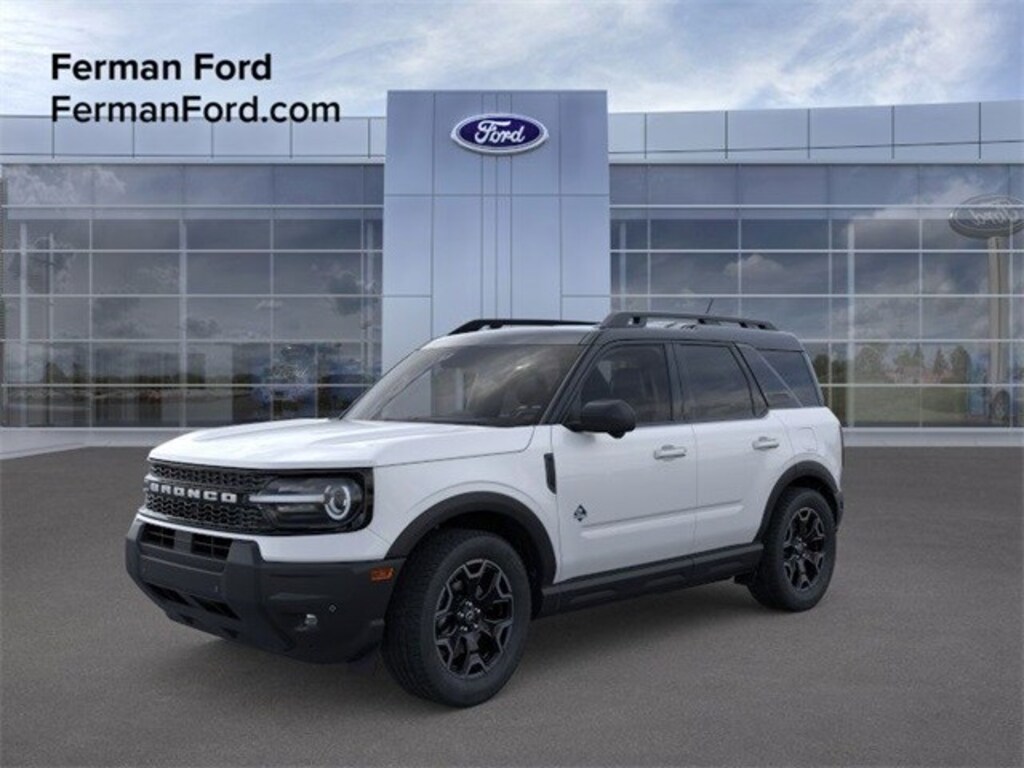 FIND IT AT FERMAN!, Free Delivery within 100 miles!, The 2025 Ford Bronco Sport Outer Banks offers a perfect blend of premium comfort, stylish design, and light off-road capability, making it an excellent choice for drivers who want everyday versatility with a rugged edge. Under the hood, it features a 1.5L EcoBoost turbocharged three-cylinder engine delivering 181 horsepower and 190 lb-ft of torque, paired with an 8-speed automatic transmission and standard all-wheel drive. This powertrain delivers impressive fuel efficiency with up to 25 MPG in the city and 30 MPG on the highway, along with a 2,000-lb towing capacity for light trailering needs. The Outer Banks trim stands out with its 18-inch machined-face aluminum wheels, body-colored door handles and fender flares, signature LED lighting, black grille with bold BRONCO lettering, and available black contrast roof. It balances urban refinement with a sporty, outdoorsy character. Inside, the cabin is outfitted with leather-trimmed, heated front seats, a leather-wrapped steering wheel, and refined touches that elevate comfort. Technology features include a large 13.2-inch SYNC 4 touchscreen with wireless Apple CarPlay and Android Auto, a digital instrument cluster, Bang & Olufsen premium audio system, wireless charging pad, and built-in Wi-Fi connectivity. Standard driver-assistance features include Ford Co-Pilot360 with blind spot monitoring, lane-keeping system, automatic emergency braking, and adaptive cruise control. The Terrain Management System with G.O.A.T. Modes adds confidence across a variety of road surfaces. The 2025 Bronco Sport Outer Banks is ideal for drivers who want upscale features, intuitive technology, and all-weather capability in a compact SUV built for both city life and weekend escapes., 4-Wheel Disc Brakes, Automatic temperature control, B&O Sound System by Bang & Olufsen, Connected Navigation, Electronic Stability Control, Four wheel independent suspension, Fully automatic headlights, HD Radio, Memory seat, Outer Banks Tech Package+, Power driver seat, Power steering, Power windows, Remote keyless entry, Steering wheel mounted audio controls. Not all customers qualify for all rebates. Price includes. : $1000 - Retail Bonus Cash. Exp. 01/05/2026