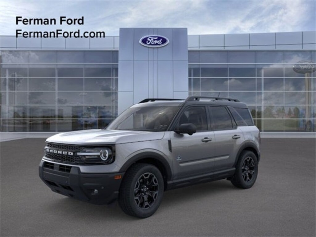 FIND IT AT FERMAN!, Free Delivery within 100 miles!, The 2025 Ford Bronco Sport Outer Banks is a stylish and versatile compact SUV designed for drivers who want rugged capability blended with upscale comfort and modern technology. Powered by a 1.5L EcoBoost turbocharged three-cylinder engine delivering 180 horsepower, it's paired with an 8-speed automatic transmission and standard all-wheel drive, making it ready for changing road and weather conditions. The Outer Banks trim features a bold, refined exterior with 18-inch Ebony Black-painted wheels, a black grille with white BRONCO lettering, LED lighting, and available two-tone paint with a black roof. Functional roof rails, heated mirrors, and keyless entry add both form and function. Inside, the cabin offers leather-trimmed seats with heating for front occupants, an 8-way power-adjustable drivers seat, and a 6-way manual front passenger seat. The heated leather-wrapped steering wheel, dual-zone automatic climate control, and MOLLE storage straps on the seatbacks cater to both convenience and adventure. Technology is front and center with a 13.2-inch SYNC 4 touchscreen, wireless Apple CarPlay and Android Auto, a wireless charging pad, and a 12.3-inch digital gauge cluster. Standard safety features include blind-spot monitoring, lane-keeping assist, rear cross-traffic alert, and adaptive cruise control. Cargo space is generous, offering about 32.5 cubic feet behind the rear seats and up to 65 cubic feet with them folded. With a towing capacity of up to 2,000 pounds, the Bronco Sport Outer Banks is well-suited for small trailers, bikes, or weekend gear. For those seeking a compact SUV that looks sharp, feels refined, and still performs when the pavement ends, the 2025 Bronco Sport Outer Banks is a standout choice. Its built for comfort, capability, and confident everyday adventure., 4-Wheel Disc Brakes, Automatic temperature control, B&O Sound System by Bang & Olufsen, Connected Navigation, Equipment Group 300A, Four wheel independent suspension, Front Parking Sensors, Fully automatic headlights, HD Radio, Memory seat, Outer Banks Tech Package+, Power driver seat, Power Moonroof, Power steering, Power windows, Remote keyless entry, Steering wheel mounted audio controls. Not all customers qualify for all rebates. Price includes. : $1000 - Retail Bonus Cash. Exp. 01/05/2026