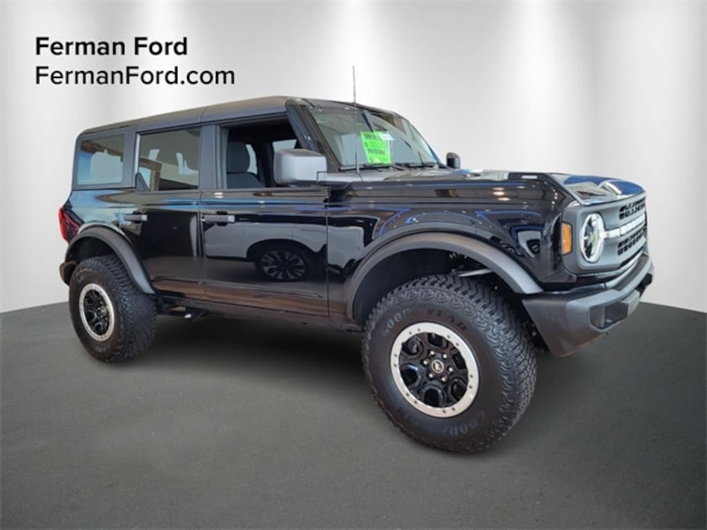 FIND IT AT FERMAN!, Free Delivery within 100 miles!, The 2025 Ford Bronco Base is the most stripped-down, no-nonsense version of this iconic SUVengineered for adventure with a focus on functionality, capability, and customization. Built for off-roaders who prefer essentials over luxury, it delivers rugged performance straight from the factory. Under the hood, it comes equipped with a 2.3L EcoBoost turbocharged four-cylinder engine producing 300 horsepower and 325 lb-ft of torque. Transmission options include a 7-speed manual with a crawler gear or a 10-speed automatic, both paired with a part-time 4WD system. With up to 3,500 lbs of towing capacity and the ability to ford over 33 inches of water, the Bronco Base is ready for trails, campsites, or daily tasks. Its rugged exterior features 16-inch steel wheels, steel bumpers, halogen headlights, and removable doors and roof panelsbringing open-air fun and serious trail readiness. Opting for the available Sasquatch Package upgrades the Base with 35-inch tires, beadlock-capable wheels, locking differentials, sway-bar disconnect, and up to 11.6 inches of ground clearance. Inside, the Bronco Base stays functional with cloth seats, durable surfaces, manual windows and locks, and easy-to-clean finishes. Standard features include an 8-inch SYNC 4 touchscreen, Apple CarPlay and Android Auto, air conditioning, cruise control, and push-button start. A new 12-inch digital gauge cluster enhances driver visibility and modern feel. For 2025, the Base trim now includes additional sound insulation, rear-seat air vents, improved interior lighting, and an optional Black Appearance Package for added style. It's a practical, customizable SUV platform for those who value performance, reliability, and simplicity. The 2025 Ford Bronco Base offers everything you need to get off the beaten pathno fluff, just adventure-ready essentials at a great value., SASQUATCH PACKAGE ADDED!, 4-Wheel Disc Brakes, Air Conditioning, AM/FM radio: SiriusXM with 360L, Equipment Group 101A, Exterior Parking Camera Rear, Fully automatic headlights, Power steering, Power windows, Remote keyless entry, Steering wheel mounted audio controls. Not all customers qualify for all rebates. Price includes. : $2000 - Retail Bonus Cash. Exp. 01/05/2026 Price includes $6,000 dealer added accessories.