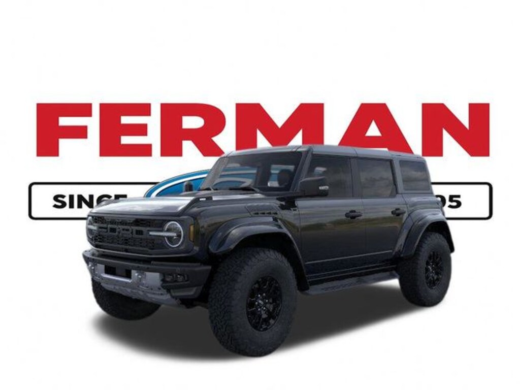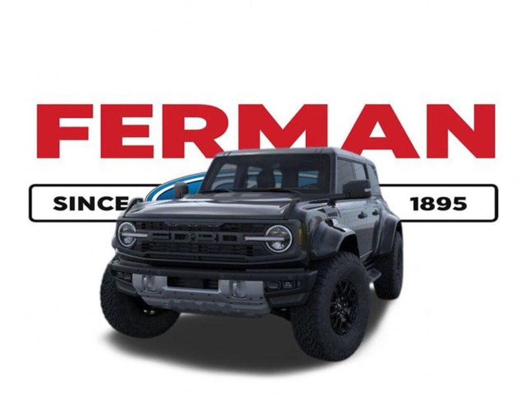 FIND IT AT FERMAN!, Free Delivery within 100 miles!, Draped in deep Agate Black, this Bronco Raptor blends fierce capability with a refined, aggressive presence. The Lux-equipped 374A package elevates the experience with premium features while preserving the rugged, trail-battling character that defines the Raptor name. Exterior & Presence The Agate Black finish gives the Raptor a stealthy, commanding look dark, bold, and ready to conquer both asphalt and rough terrain. With the Raptors wide stance, muscular flares, and aggressive front fascia, the dark paint highlights the sculpted lines and bold proportions. Blacked-out accents (trim, grille elements, and wheel details) enhance the monochromatic style, lending an aura of purposeful sophistication. The Lux package may include upgraded wheels (often gloss black or high-contrast finishes), premium lighting elements, and refined exterior trim cues that balance performance and elegance. Powertrain & Capability At its core is the 3.0L twin-turbocharged EcoBoost V6, delivering around 418 horsepower and 420 lb-ft of torque, channeled through a 10-speed automatic to an advanced 4Ã?4 drivetrain. The Raptors suspension, underbody protection, and off-road hardware let it tackle rugged trails, desert runs, rock sections, or hovering over unpredictable terrain with confidence. Drive modes tailored to varying environments (e.g. Baja, rock crawl, mud, sand) let you optimize traction, throttle response, damping, and control for the situation. With robust framing, skid plates, and reinforced components, this Raptor is built to endure hard use as well as deliver aggressive performance on demand. Interior & Comfort (Lux Enhancements) Inside, the Lux package brings a higher level of nuance: premium materials, upgraded trim, and comfort amenities beyond the base Raptor setup. The cabin is likely to include features like a heated steering wheel, adaptive cruise control, and 360-degree camera system, enhancing both convenience and safety in varied conditions. Leather-trimmed or high-quality seating surfaces (often with contrast stitching, bolstering, and possibly code-color accents) deliver a sporty yet upscale feel. The infotainment system utilizes a large central touchscreen (SYNC4 or similar), with smartphone integration (wireless Apple CarPlay / Android Auto) and possibly a Bang & Olufsen or premium audio system. Practical touches such as overhead storage, multiple USB and charging ports, durable materials, and thoughtful layout keep things functional during off-road missions. Appeal & Strengths For the buyer who wants the full off-road prowess of a Bronco Raptor and premium features, the 374A Lux version in Agate Black offers a compelling balance: performance with polish. The dark, muscular aesthetic fits both the trail and the city you wont feel over the top on pavement, yet the vehicle retains unmistakable capability. The Lux packages comfort and tech upgrades make long journeys more tolerable and daily driving more refined, without diluting the Raptors rugged DNA., 4-Wheel Disc Brakes, Automatic temperature control, Connected Navigation, Convertible HardTop, Equipment Group 374A Lux Package, Exterior Parking Camera Rear, Fully automatic headlights, Navigation system: Connected Navigation, Power steering, Power windows, Radio: B&O Sound System by Bang & Olufsen, Remote keyless entry, SiriusXM w/360L, Steering wheel mounted audio controls, SYNC 4, Traction control. 2025 Ford Bronco Raptor