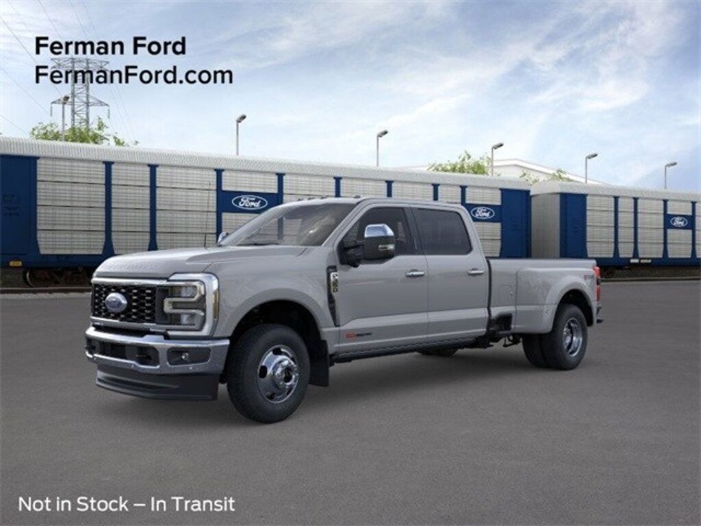 FIND IT AT FERMAN!, Free Delivery within 100 miles!, The 2025 Ford F-350SD Lariat DRW with the 6.7L High Output Power Stroke Turbo Diesel is built for serious hauling, exceptional towing capability, and premium comfort. Designed for heavy-duty work while offering a refined driving experience, this truck delivers unmatched strength and reliability. Powertrain & Performance 6.7L High Output Power Stroke V8 Turbo Diesel, producing 500 horsepower and up to 1,200 lb-ft of torque. 10-speed TorqShift automatic transmission designed for heavy-duty performance and durability. Dual Rear Wheel (DRW) configuration providing maximum stability and towing confidence. Advanced exhaust braking and selectable drive modes for improved control under heavy loads. Towing & Payload Maximum towing capacity of up to 40,000 lbs with gooseneck or fifth-wheel setup. Payload rating of approximately 8,000 lbs, built for heavy-duty work applications. Integrated trailer brake controller, Tow/Haul mode, and Pro Trailer Backup Assist for easy trailer maneuvering. Exterior Features Chrome-accented Lariat styling with a bold grille and premium LED lighting. 18-inch polished aluminum wheels and heavy-duty all-terrain tires. Power extendable and folding trailer tow mirrors for improved visibility. Available spray-in bedliner and power tailgate with step and grab handle for convenience. Interior & Technology Luxurious leather-trimmed seating with heating and ventilation in the front row. Crew Cab configuration with spacious seating for up to six passengers. SYNC 4 infotainment system with large touchscreen, wireless smartphone integration, premium audio, and navigation. Dual-zone automatic climate control, power-adjustable pedals, and customizable digital display cluster. Safety & Driver Assistance Ford Co-Pilot360 suite including adaptive cruise control, blind-spot monitoring with trailer coverage, pre-collision assist, and lane-keeping system. 360-degree camera with trailer guidance for safer towing and backing up. AdvanceTrac with Roll Stability Control and electronic locking rear differential for enhanced traction and control. Summary The 2025 Ford F-350SD Lariat DRW 6.7L High Output is a heavy-duty powerhouse built for demanding workloads and long hauls. With its record-setting towing capacity, dual rear wheel stability, advanced technology, and upscale interior, this truck is ideal for drivers who need uncompromising capability and premium comfort in a single package. Ask ChatGPT, 4WD, 4-Way Adjustable Headrests, ABS brakes, Automatic temperature control, Compass, Electronic Stability Control, Front Splash Guards/Mud Flaps (Pre-Installed), Fully automatic headlights, FX4 Off-Road Package, Head-Up Display, Heated door mirrors, Hill Descent Control, Illuminated entry, Lariat Ultimate Package, Low tire pressure warning, Off-Road Specifically Tuned Shock Absorbers, Order Code 628A, Power steering, Power windows, Power-Deployable Running Boards, Power-Sliding Rear-Window w/Defrost, Pro Trailer Backup Assist, Pro Trailer Hitch Assist, Radio: B&O Unleashed Sound System by Bang & Olufsen, Remote keyless entry, SiriusXM Radio w/360L, Steering wheel mounted audio controls, SYNC 4 w/Enhanced Voice Recognition, Tailgate Step & Handle, Traction control, Unique FX4 Off-Road Box Decal.