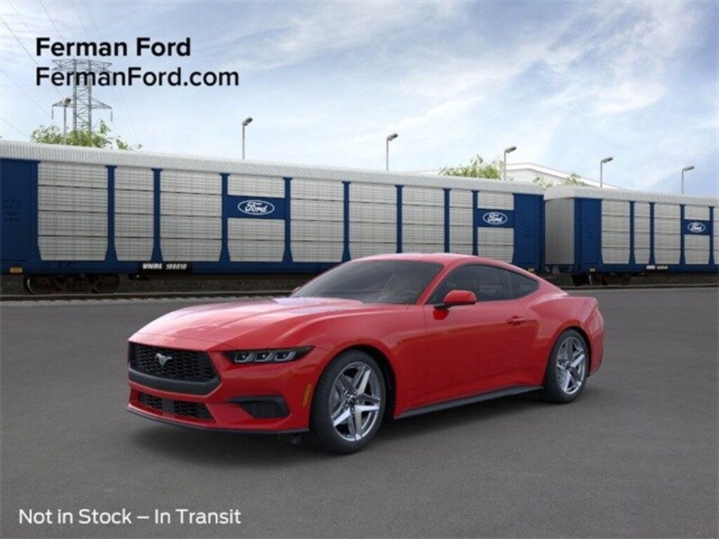 FIND IT AT FERMAN!, Free Delivery within 100 miles!, The 2025 Ford Mustang EcoBoost delivers a modern take on classic muscle, blending turbocharged performance, sleek design, and cutting-edge technology. Under the hood, it features a 2.3-liter turbocharged inline-four engine producing 315 horsepower and 350 lb-ft of torque, paired with a 10-speed automatic transmission for responsive and smooth gear shifts. Rear-wheel drive ensures an engaging and sporty driving experience. Inside, the Mustang EcoBoost offers a refined, driver-focused cabin with a 12.4-inch digital instrument cluster and a 13.2-inch touchscreen powered by SYNC 4. These displays provide customizable interfaces and seamless smartphone integration through wireless Apple CarPlay and Android Auto. The cabin seats four and includes supportive sport seats and high-quality materials for a comfortable ride. The Mustang EcoBoost also emphasizes safety with a suite of standard driver-assist features, including Pre-Collision Assist with Automatic Emergency Braking, a Lane-Keeping System, Blind Spot Information System with Cross-Traffic Alert, a rearview camera, and automatic high-beam headlamps. With aggressive styling, modern tech, and turbocharged power, the 2025 Ford Mustang EcoBoost offers an accessible entry point into the Mustang lineupideal for drivers seeking performance, style, and innovation in a legendary package., 4-Wheel Disc Brakes, 9-Speaker Stereo System, ABS brakes, Alloy wheels, Cloth/Vinyl Heated Bucket Seats, Compass, Electronic Stability Control, Equipment Group 101A High Package, Front dual zone A/C, Fully automatic headlights, Illuminated entry, Low tire pressure warning, Power steering, Power windows, Rear Parking Sensors, Remote keyless entry, SiriusXM w/360L & HD Radio, Steering wheel mounted audio controls, SYNC 4, Traction control. Not all customers qualify for all rebates. Price includes. : $1500 - Retail Customer Cash. Exp. 01/05/2026