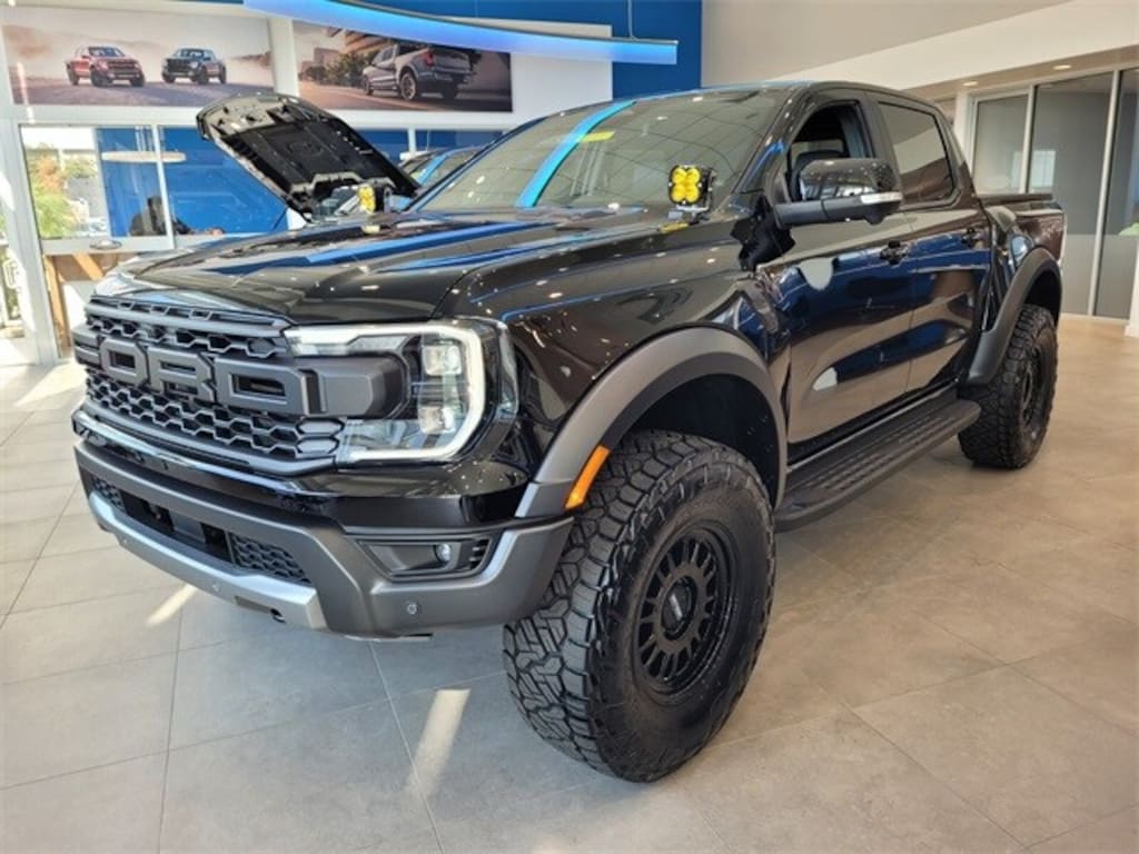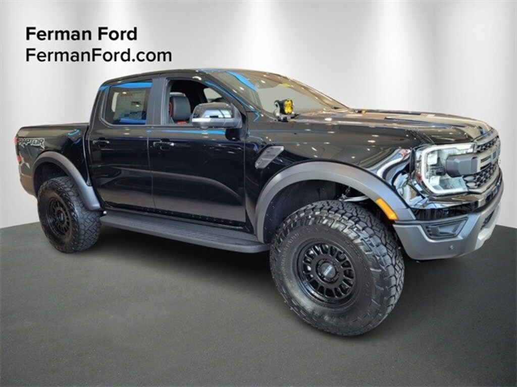 FIND IT AT FERMAN!, Free Delivery within 100 miles!, Draped in Shadow Black, the 2025 Ranger Raptor projects an aura of stealth and power. The deep, glossy black finish hugs every sculpted contour and accentuates the bold grille, flared fenders, and aggressive stancegiving the truck a menacing, purposeful presence both on and off the road. Exterior & Design Color & Presence: The Shadow Black paint exudes sophistication while quietly demanding attention. Under sunlight, subtle undertones and reflections bring depth; in low light, it becomes monolithic and commanding. Signature Raptor Styling: Expect muscular wheel arches, bold FORD block lettering across the grille, contrast textured surfaces, and off-road-ready accents that underscore its performance pedigree. Wheels & Tires: Massive all-terrain tires wrap around rugged black alloy wheels. The design is meant to balance on-road composure with serious off-road grip. Protection & Hardware: Youll find integrated skid plates, reinforced bumpers, tow hooks, and durable cladding all engineered to endure rocks, ruts, and harsh terrain without compromising style. Lighting: Adaptive LED headlights, fog lamps, and accent lighting help sculpt and emphasize the blacked-out profile, especially at dusk or dawn. Performance & Capability Heart & Power: The Raptor is built to deliver torque, speed, and enthusiasm. (Depending on configuration, you might see a high-output engine tuned for off-road prowess.) Transmission & 4Ã?4 System: A refined, responsive automatic transmission works in tandem with a sophisticated 4Ã?4 system, giving you selectable modes and the agility to tackle gravel, mud, or desert dunes. Suspension & Damping: The Raptors suspension is tuned for extremes capable of absorbing big hits, jumps, and transitions while maintaining control and driver confidence. Traction & Control: Electronic differentials, traction aids, and terrain-select modes (like Baja, Rock, Mud) allow you to tailor the trucks behavior to the environment instantly. Towing & Hauling: Built on a capable chassis, the Raptor can tow with authority and manage payload with composure, making it just as useful for work or adventure. Interior & Experience Cabin Mood: Inside, the theme carries oversubdued blacks, charcoal accents, and high-contrast trim details lend a race-inspired, focused feel. Seats & Materials: Bolstered sport seats (often leather or a premium composite) deliver comfort and support for aggressive driving or long-haul cruising. Infotainment & Interface: A large touchscreen infotainment system, digital gauge cluster, and intuitive controls give you connectivity, vehicle data, trail maps, and driver aids at your fingertips. Tech & Assistance: Expect driver assistance featureslane-keeping, adaptive cruise, blind-spot monitors, 360 camerasand trail assist modes custom-tailored to the adventurous spirit of the Ranger Raptor. Utility & Smart Features: Tons of clever touches: charging ports, cargo control systems, bed lighting, and perhaps trail-oriented accessories or camping-friendly features. Character & Promise The 2025 Ranger Raptor in Shadow Black is more than just a high-performance midsize truckits an embodiment of boldness and capability. From city lights to dune lines, it commands respect with its stealthy darkness and backs it up with engineered ferocity. A truck for those who want their ride to look like it means business, and behave like it earned that right., 2.25 RPG LIFT, METHOD 318 17" WHEELS, NITTO RECON 35" TIRES, BAJA DESIGN XL SPORT LIGHTS, 4WD, 4-Wheel Disc Brakes, Automatic temperature control, Electronic Stability Control, Equipment Group 800A Standard, Fully automatic headlights, Memory seat, Navigation system: Connected Navigation, Power driver seat, Power steering, Power windows, Radio: B&O Sound System by Bang & Olufsen, Remote keyless entry, SiriusXM Satellite Radio, Speed-sensing steering, Steering wheel mounted audio control Price includes $6,500 dealer added accessories.