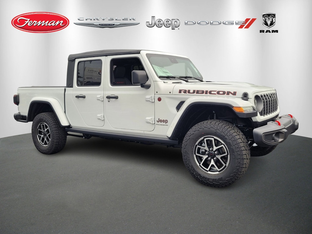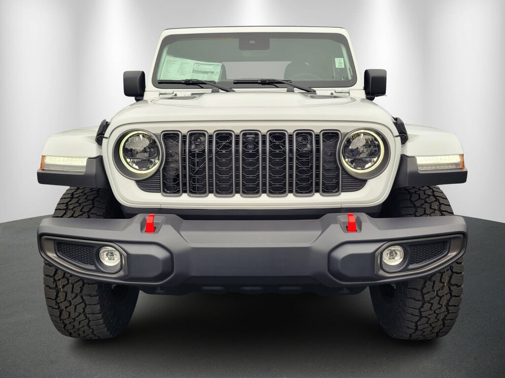 Bright White Clearcoat 2025 Gladiator Rubicon 4WD 8-Speed Automatic 3.6L V6 24V VVT 12.3" Touchscreen Display, 4-Wheel Disc Brakes, 4.10 Rear Axle Ratio, 4G LTE Wi-Fi Hot Spot, 8 Speakers, 97 MPH Vehicle Max Speed Calibration, ABS brakes, Air Conditioning, Alexa Built-In, Alloy wheels, Alpine Premium Audio System, AM/FM radio: SiriusXM, Apple CarPlay, Apple CarPlay/Android Auto, Auto High Beam Headlamp Control, Auto-Dimming Rear-View Mirror, Automatic temperature control, Blind Spot & Cross Path Detection, Bluetooth Wireless Speaker, Body Color Rubicon Highline Flare, Brake assist, Cloth Low-Back Bucket Seats, Compass, Connected Travel & Traffic Services, Connectivity - US/Canada, Convenience Group, Delay-off headlights, Driver door bin, Driver vanity mirror, Dual front impact airbags, Dual front side impact airbags, Electronic Stability Control, Emergency communication system: Jeep Connect, Front anti-roll bar, Front Bucket Seats, Front Center Armrest w/Storage, Front dual zone A/C, Front fog lights, Front reading lights, Fully automatic headlights, Google Android Auto, GPS Antenna Input, GPS Navigation, HD Radio, Heated door mirrors, Heated Front Seats, Heated Steering Wheel, Illuminated entry, Integrated Off-Road Camera, Integrated roll-over protection, Integrated Voice Command w/Bluetooth, Low tire pressure warning, MOPAR All-Weather Slush Mats, Occupant sensing airbag, Outside temperature display, Overhead airbag, Panic alarm, ParkSense Rear Park Assist System, Passenger door bin, Passenger vanity mirror, Performance Suspension, Power door mirrors, Power steering, Power windows, Quick Order Package 24R Rubicon, Radio data system, Radio: Uconnect 5 Nav w/12.3" Display, Radio: Uconnect 5 w/12.3" Display, Rear anti-roll bar, Rear reading lights, Remote keyless entry, Remote Start System, Safety Group, Security system, SiriusXM Radio Service, SiriusXM w/360L, Speed control, Split folding rear seat, Steering wheel mounted audio controls, Tachometer, Technology Group, Telescoping steering wheel, Tilt steering wheel, Traction control, Trip computer, Universal Garage Door Opener, USB Host Flip, Variably intermittent wipers, Voltmeter, Wheels: 17" x 7.5" Machined/Painted Black. Price includes: $5500 - 2025 National Bonus Cash . Exp. 11/03/2025