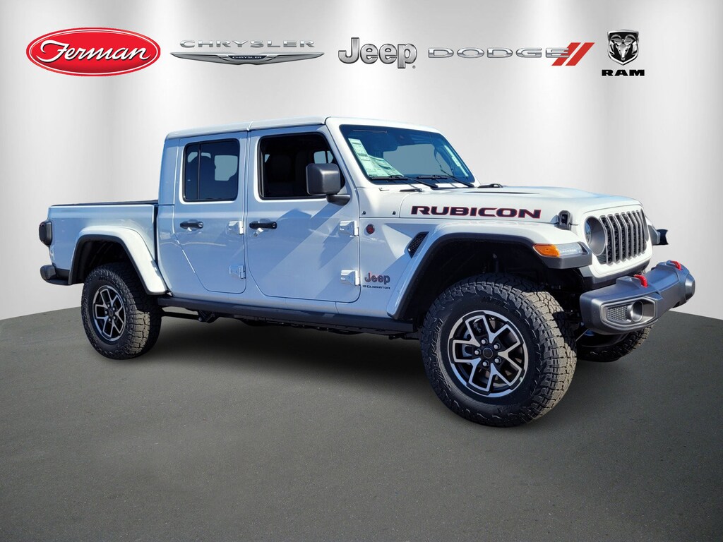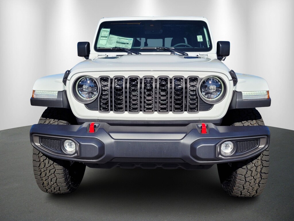 Bright White Clearcoat 2025 Gladiator Rubicon 4WD 8-Speed Automatic 3.6L V6 24V VVT 12.3" Touchscreen Display, 4-Wheel Disc Brakes, 4.10 Rear Axle Ratio, 4G LTE Wi-Fi Hot Spot, 8 Speakers, 97 MPH Vehicle Max Speed Calibration, ABS brakes, Air Conditioning, Alexa Built-In, Alloy wheels, Alpine Premium Audio System, AM/FM radio: SiriusXM, Apple CarPlay, Apple CarPlay/Android Auto, Auto High Beam Headlamp Control, Auto-Dimming Rear-View Mirror, Automatic temperature control, Blind Spot & Cross Path Detection, Bluetooth Wireless Speaker, Body Color 3-Piece Hard Top, Body Color Rubicon Highline Flare, Brake assist, Cloth Low-Back Bucket Seats, Compass, Connected Travel & Traffic Services, Connectivity - US/Canada, Convenience Group, Delay-off headlights, Driver door bin, Driver vanity mirror, Dual front impact airbags, Dual front side impact airbags, Electronic Stability Control, Emergency communication system: Jeep Connect, Freedom Panel Storage Bag, Front anti-roll bar, Front Bucket Seats, Front Center Armrest w/Storage, Front dual zone A/C, Front fog lights, Front reading lights, Fully automatic headlights, Google Android Auto, GPS Antenna Input, GPS Navigation, HD Radio, Heated door mirrors, Heated Front Seats, Heated Steering Wheel, Illuminated entry, Integrated Off-Road Camera, Integrated roll-over protection, Integrated Voice Command w/Bluetooth, Low tire pressure warning, MOPAR All-Weather Slush Mats, MOPAR Spray In Bedliner, Occupant sensing airbag, Outside temperature display, Overhead airbag, Panic alarm, ParkSense Rear Park Assist System, Passenger door bin, Passenger vanity mirror, Performance Suspension, Power door mirrors, Power steering, Power windows, Quick Order Package 24R Rubicon, Radio data system, Radio: Uconnect 5 Nav w/12.3" Display, Radio: Uconnect 5 w/12.3" Display, Rear anti-roll bar, Rear reading lights, Rear Sliding Window, Rear Window Defroster, Remote keyless entry, Remote Start System, Safety Group, Security system, SiriusXM Radio Service, SiriusXM w/360L, Speed control, Split folding rear seat, Steering wheel mounted audio controls, Tachometer, Technology Group, Telescoping steering wheel, Tilt steering wheel, Traction control, Trip computer, Universal Garage Door Opener, USB Host Flip, Variably intermittent wipers, Voltmeter, Wheels: 17" x 7.5" Machined/Painted Black. Price includes: $1500 - 2025 National Stellantis Loyalty Retail Bonus Cash . Exp. 12/01/2025 $5500 - 2025 National Bonus Cash . Exp. 12/01/2025