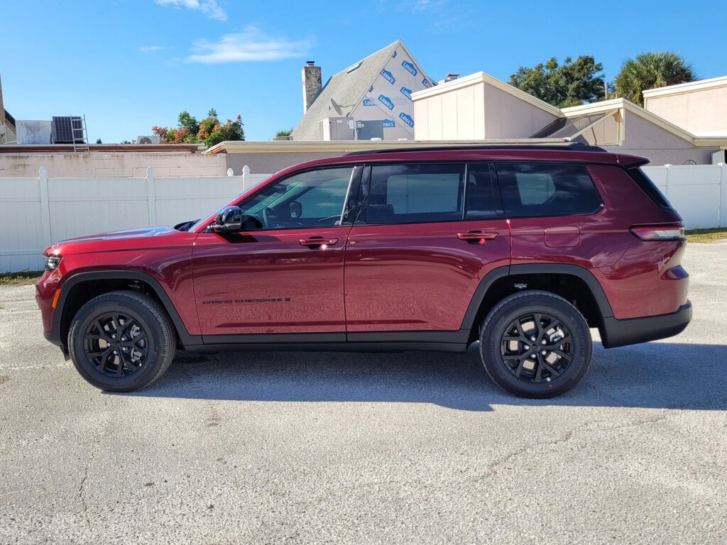 Velvet Red Pearlcoat 2025 Grand Cherokee L Altitude X RWD 8-Speed Automatic 3.6L V6 24V VVT 115V Auxiliary Power Outlet, 3.45 Rear Axle Ratio, 3rd Row Charge-Only USB Ports, 3rd row seats: split-bench, 4-Wheel Disc Brakes, 6 Speakers, ABS brakes, Air Conditioning, Alloy wheels, Altitude X, AM/FM radio: SiriusXM, Anti-whiplash front head restraints, Automatic temperature control, Black Headliner, Brake assist, Bumpers: body-color, Capri Leatherette/Suede Seats, Cloth Seats, Compass, Delay-off headlights, Delete Laredo Badge, Driver door bin, Driver vanity mirror, Dual front impact airbags, Dual front side impact airbags, Electronic Stability Control, Emergency communication system, Four wheel independent suspension, Front anti-roll bar, Front Bucket Seats, Front Center Armrest w/Storage, Front dual zone A/C, Front reading lights, Fully automatic headlights, Gloss Black Exterior Accents, Heated door mirrors, Heated Front Seats, Heated Steering Wheel, Illuminated entry, Knee airbag, Low tire pressure warning, Manual Fold Seatbacks, Model Year Tracking, Normal Duty Suspension, Occupant sensing airbag, Outside temperature display, Overhead airbag, Overhead console, Panic alarm, ParkView Rear Back-Up Camera, Passenger door bin, Passenger vanity mirror, Power door mirrors, Power driver seat, Power Liftgate, Power steering, Power Sunroof, Power windows, Quick Order Package 23M Altitude X, Radio data system, Radio: Uconnect 5 w/8.4" Display, Rain Sensitive Windshield Wipers, Rear air conditioning, Rear anti-roll bar, Rear reading lights, Rear window defroster, Rear window wiper, Reclining 3rd row seat, Remote keyless entry, Remote Start System, Security system, Selectable Tire Fill Alert, Speed control, Speed-Sensitive Wipers, Split folding rear seat, Spoiler, Steering wheel mounted audio controls, Tachometer, Telescoping steering wheel, Tilt steering wheel, Traction control, Trip computer, Variably intermittent wipers, Voltmeter, Wheels: 18" x 8.0" Fully Painted Aluminum, Wheels: 18" x 8.0" Fully Painted Aluminum 1, Wireless Charging Pad.