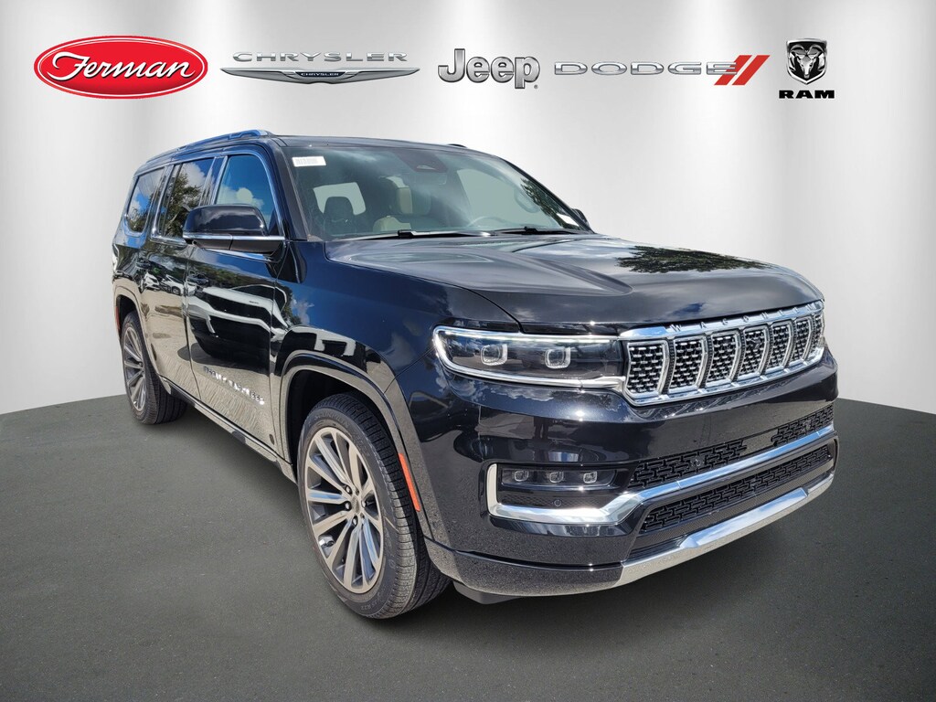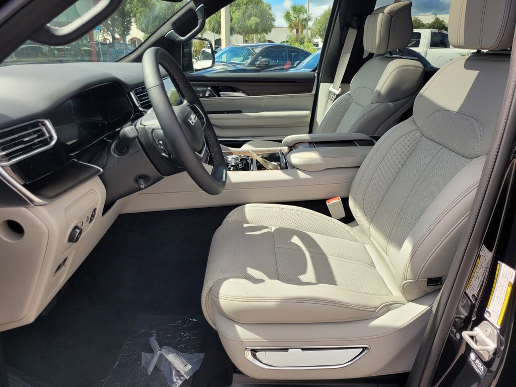 Scores 20 Highway MPG and 14 City MPG! This Jeep Grand Wagoneer delivers a Twin Turbo Premium Unleaded I-6 3.0 L/183 engine powering this Automatic transmission. WHEELS: 22" X 9.0" PREMIUM 1 ALUMINUM (STD), TRANSMISSION: 8-SPEED AUTOMATIC (8HP75) (STD), SEA SALT/BLACK, LEATHER TRIMMED BUCKET SEATS.