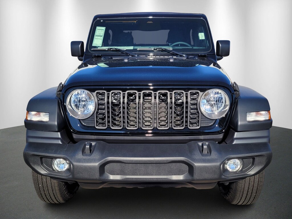 Black Clearcoat 2025 Wrangler Sport S 4WD 8-Speed Automatic 2.0L I4 DOHC 110 MPH Vehicle Max Speed Calibration, 3.45 Overall Top Gear Ratio, 4-Wheel Disc Brakes, 8 Speakers, ABS brakes, Advanced Brake Assist, Air Conditioning, AM/FM radio: SiriusXM, Apple CarPlay/Android Auto, Automatic Headlamps, Aux Battery, Brake assist, Cloth Low-Back Bucket Seats, Compass, Corning Gorilla Glass, Deep Tint Sunscreen Windows, Delay-off headlights, Driver door bin, Driver vanity mirror, Dual front impact airbags, Dual front side impact airbags, Electronic Stability Control, Enhanced Adaptive Cruise Control, Front anti-roll bar, Front Bucket Seats, Front Center Armrest w/Storage, Front fog lights, Front reading lights, Full Speed Forward Collision Warning Plus, Illuminated entry, Integrated roll-over protection, Low tire pressure warning, Non-Lock Fuel Cap w/o Discriminator, Normal Duty Suspension, Occupant sensing airbag, Outside temperature display, Overhead airbag, Panic alarm, ParkView Rear Back-Up Camera, Passenger door bin, Passenger vanity mirror, Power Heated Mirrors, Power steering, Power windows, Premium Wrapped Steering Wheel, Quick Order Package 22S Sport S, Radio data system, Radio: Uconnect 5 w/12.3" Display, Rear anti-roll bar, Rear reading lights, Remote keyless entry, Security Alarm, Speed control, Steering wheel mounted audio controls, Stop-Start Dual Battery System, Sun Visors w/Illuminated Vanity Mirrors, Tachometer, Telescoping steering wheel, Tilt steering wheel, Traction control, Trip computer, Variably intermittent wipers, Wheels: 17" x 7.5" Black Steel Styled, Wheels: 17" x 7.5" Gray. Price includes: $2000 - 2025 National Retail Bonus Cash . Exp. 11/03/2025