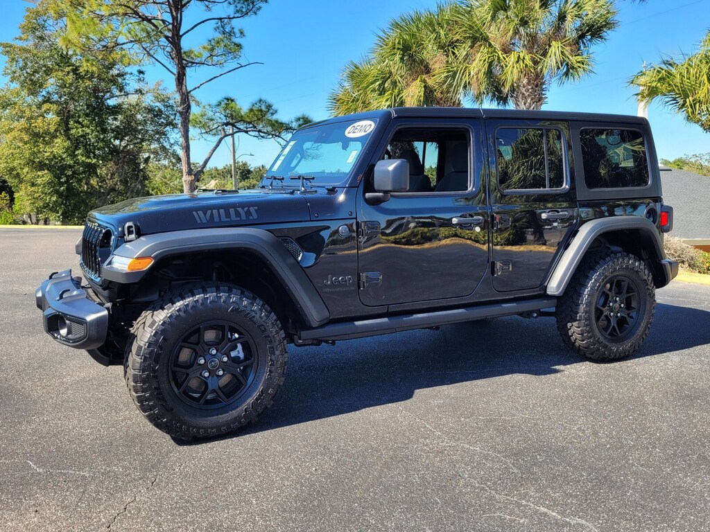 Black Clearcoat 2025 Wrangler Willys 4WD 8-Speed Automatic 3.6L V6 24V VVT 110 MPH Vehicle Max Speed Calibration, 3.45 Overall Top Gear Ratio, 4-Wheel Disc Brakes, 8 Speakers, ABS brakes, Air Conditioning, AM/FM radio: SiriusXM, Apple CarPlay/Android Auto, Aux Battery, Brake assist, Cloth Low-Back Bucket Seats, Compass, Delay-off headlights, Driver door bin, Driver vanity mirror, Dual front impact airbags, Dual front side impact airbags, Electronic Stability Control, Front anti-roll bar, Front Bucket Seats, Front Center Armrest w/Storage, Front fog lights, Front reading lights, Illuminated entry, Integrated roll-over protection, Low tire pressure warning, Non-Lock Fuel Cap w/o Discriminator, Normal Duty Suspension, Occupant sensing airbag, Outside temperature display, Overhead airbag, Panic alarm, ParkView Rear Back-Up Camera, Passenger door bin, Passenger vanity mirror, Power steering, Power windows, Radio data system, Radio: Uconnect 5 w/12.3" Display, Rear anti-roll bar, Rear reading lights, Remote keyless entry, Speed control, Split folding rear seat, Steering wheel mounted audio controls, Stop-Start Dual Battery System, Tachometer, Telescoping steering wheel, Tilt steering wheel, Traction control, Trip computer, Variably intermittent wipers, Wheels: 17" x 7.5" Black Steel Styled. Price includes: $1500 - 2025 National Bonus Cash . Exp. 01/05/2026 $1500 - 2025 National Stellantis Loyalty Retail Bonus Cash . Exp. 01/05/2026 $2000 - 2025 National Holiday Select Inventory Bonus Cash. Exp. 01/05/2026 $2500 - 2025 National Retail Bonus Cash . Exp. 01/05/2026