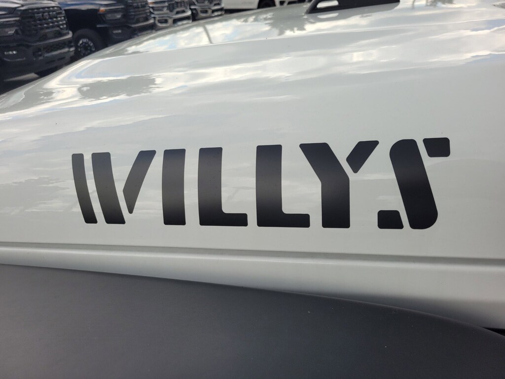 QUICK ORDER PACKAGE 24W WILLYS -inc: Engine: 3.6L V6 24V VVT UPG I w/ESS, Transmission: 8-Speed Automatic (850RE), 7 & 4 Pin Wiring Harness, Conventional Differential Front Axle, 4-Wheel Drive Swing Gate Decal, Black Grille, Injection Molded Black Rear Bumper, Dana M210 Wide HD Tube Front Axle, Daytime Running Lamps LED Accents, Front LED Fog Lamps, LED Premium Reflector Headlamps, E-Locker Rear Axle, Corning Gorilla Glass, Security Alarm, Class II Receiver Hitch, Mold In Color Bumper w/Gloss Black, Advanced Brake Assist, Automatic Headlamps, Off-Road Plus Mode, Willys Hood Decal, Full Speed Forward Collision Warning Plus, Rock Protection Sill Rails, 97 MPH Vehicle Max Speed Calibration, Power Heated Mirrors, Enhanced Adaptive Cruise Control, Auxiliary Switches, Dana M220 Wide Rear Axle, Molded in Color Rubicon Highline Flare, Premium Wrapped Steering Wheel, Sun Visors w/Illuminated Vanity Mirrors , TIRES: LT285/70R17C BSW M/T (STD), GVWR: 5,675 LBS (STD), ENGINE: 3.6L V6 24V VVT UPG I W/ESS (STD), BRIGHT WHITE CLEARCOAT, BLACK, CLOTH LOW-BACK BUCKET SEATS, BLACK 3-PIECE HARD TOP -inc: Freedom Panel Storage Bag, Rear Window Defroster, Rear Window Wiper/Washer, 4.10 REAR AXLE RATIO (STD), Window Grid Antenna, Willy's Suspension.