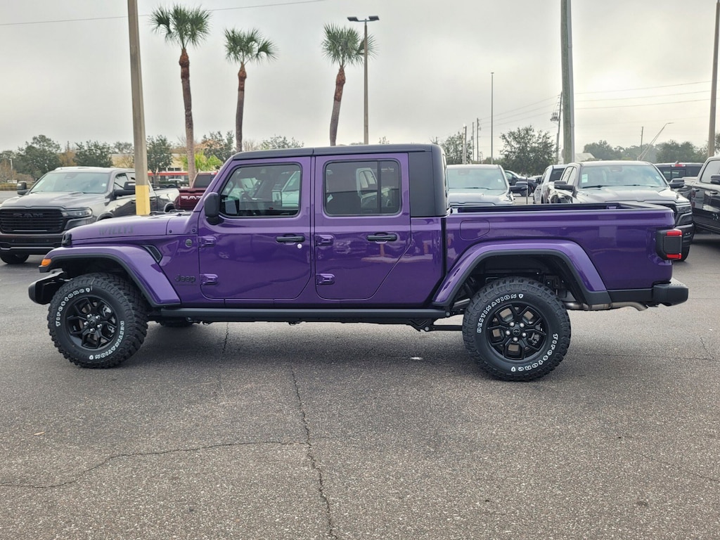 Reign 2026 Gladiator Willys 4WD 8-Speed Automatic 3.6L V6 24V VVT 110 Mph Vehicle Max Speed Calibration, 12.3" Touchscreen Display, 2-Piece Body Color Fender Flares, 3.73 Rear Axle Ratio, 4-Wheel Disc Brakes, 4-Wheel Drive Decal, 4G LTE Wi-Fi Hot Spot, 8 Speakers, ABS brakes, Advanced Brake Assist, Air Conditioning, Air Conditioning with Auto Temp Control, Alexa Built-in, AM/FM radio: SiriusXM with 360L, Apple CarPlay, Apple CarPlay/Android Auto, Automatic Headlamps, Auxiliary Switches, Black 3-Piece Hard Top, Black Grille, Brake assist, Class IV Receiver Hitch, Cluster 7.0" TFT Color Display, Compass, Connectivity - US/Canada, Corning Gorilla Glass, Daytime Running Lamps LED Accents, Deep Tint Sunscreen Windows, Delay-off headlights, Driver door bin, Driver vanity mirror, Dual front impact airbags, Dual front side impact airbags, E-Locker Rear Axle, Electronic Stability Control, Freedom Panel Storage Bag, Front anti-roll bar, Front Bucket Seats, Front Center Armrest w/Storage, Front Door Locks 2-Door Passive Entry, Front fog lights, Front Heavy Duty Red Accent Shock Absorbers, Front LED Fog Lamps, Front reading lights, Full Speed Forward Collision Warning Plus, Google Android Auto, Heavy-Duty Engine Cooling, Illuminated entry, Integrated roll-over protection, LED Premium Reflector Headlamps, LED Taillamps, Low tire pressure warning, Manufacturer's Statement of Origin, Mold in Color Bumper with Gloss Black, MOPAR All-Weather Slush Mats, Normal Duty Suspension, Occupant sensing airbag, Off-Road Plus Mode, Outside temperature display, Overhead airbag, Panic alarm, ParkView Rear Back-Up Camera, Passenger door bin, Passenger vanity mirror, Power Heated Mirrors, Power steering, Power windows, Premium Wrapped Steering Wheel, Protection Sill Rails, Quick Order Package 24W Willys, Radio data system, Radio: Uconnect 5 with 12.3" Display, Rear anti-roll bar, Rear Heavy Duty Red Accent Shock Absorbers, Rear reading lights, Rear Sliding Window, Rear Window Defroster, Remote keyless entry, Security Alarm, Speed control, Split folding rear seat, Steering wheel mounted audio controls, Sun Visors with Illuminated Vanity Mirrors, Tachometer, Telescoping steering wheel, Tilt steering wheel, Traction control, Trailer Hitch Zoom, Trip computer, USB Host Flip, Variably intermittent wipers, Voltmeter, Wheels: 17" x 7.5" Black Steel Styled, Wheels: 17" x 7.5" Painted Black, Willys Hood Decal, Willys Suspension.