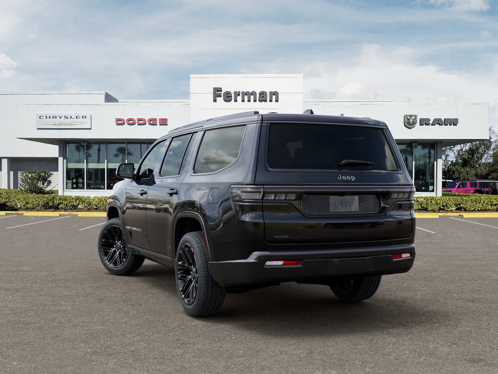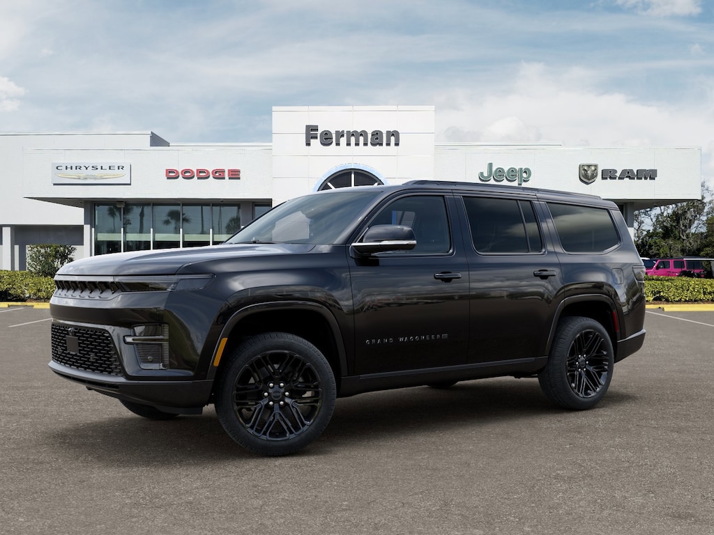 High Gloss Black 2026 Grand Wagoneer Limited Reserve 4WD 8-Speed Automatic 3.0L I6 118 Mph Maximum Speed Calibration, 19 Speaker McIntosh Audio System, 2nd Row Manual Window Shades, 3 Panel Sunroof, 3.55 Rear Axle Ratio, 3rd row seats: bench, 4-Wheel Disc Brakes, 9 Speakers, ABS brakes, Air Conditioning, Alloy wheels, AM/FM radio: SiriusXM with 360L, Anti-whiplash front head restraints, Apple CarPlay/Android Auto, Audio memory, Augmented HUD, Auto Adjust in Reverse Exterior Mirrors, Auto High-beam Headlights, Auto-dimming door mirrors, Auto-Dimming Exterior Driver Mirror, Auto-dimming Rear-View mirror, Auto-leveling suspension, Automatic temperature control, Black Appearance Package, Black Exterior Accents, Brake assist, Bumpers: body-color, Cargo Cover, Cluster 12" TFT Color Display, Compass, Delay-off headlights, Driver door bin, Driver vanity mirror, Driver's Seat Mounted Armrest, Dual front impact airbags, Dual front side impact airbags, Electronic Stability Control, Emergency communication system: Jeep Connect, Exterior Mirrors Approach Lamps, Exterior Mirrors with Memory, Exterior Mirrors with Supplemental Signals, Exterior Parking Camera Rear, Four wheel independent suspension, Front anti-roll bar, Front Bucket Seats, Front Center Armrest w/Storage, Front dual zone A/C, Front fog lights, Front reading lights, Fully automatic headlights, Garage door transmitter, Heated door mirrors, Heated Exterior Mirrors, Heated front seats, Heated rear seats, Heated steering wheel, Illuminated entry, Instrument Panel, Interior Rear Facing Camera, Knee airbag, Leather Trimmed Bucket Seats, Limited Reserve Package, Low tire pressure warning, Luxury Front and Rear Floor Mats, Manufacturer Statement of Origin, Memory seat, Navigation System, Normal Duty Suspension, Occupant sensing airbag, Outside temperature display, Overhead airbag, Overhead console, P and P Park and Unpark Assist with Stop System, Panic alarm, Passenger door bin, Passenger seat mounted armrest, Passenger vanity mirror, Power Deployable Running Boards, Power door mirrors, Power driver seat, Power Liftgate, Power passenger seat, Power steering, Power windows, Quadra-Lift Air Suspension, Quick Order Package 29D Reserve, Radio data system, Radio: Uconnect 5 Nav with 12.0" Display, Rain sensing wipers, Rear air conditioning, Rear anti-roll bar, Rear reading lights, Rear seat center armrest, Rear window defroster, Rear window wiper, Reclining 3rd row seat, Remote keyless entry, Reversible Carpet/Vinyl Cargo Mat, Security system, Semi Active Damping, Side Distance Warning, Smartphone as a Key Prep, Speed control, Speed-sensing steering, Speed-Sensitive Wipers, Split folding rear seat, Steering wheel memory, Steering wheel mounted audio controls, Surround View Camera System, Tachometer, Telescoping steering wheel, Tilt steering wheel, Titanium Daylight Opening Upper, Titanium Upper Grille Applique, Traction control, Trip computer, Turn signal indicator mirrors, Variably intermittent wipers, Ventilated front seats, Ventilated rear seats, Voltmeter, Wheels: 20" x 9" Aluminum Painted, Wheels: 22" x 9" Painted Gloss Black.