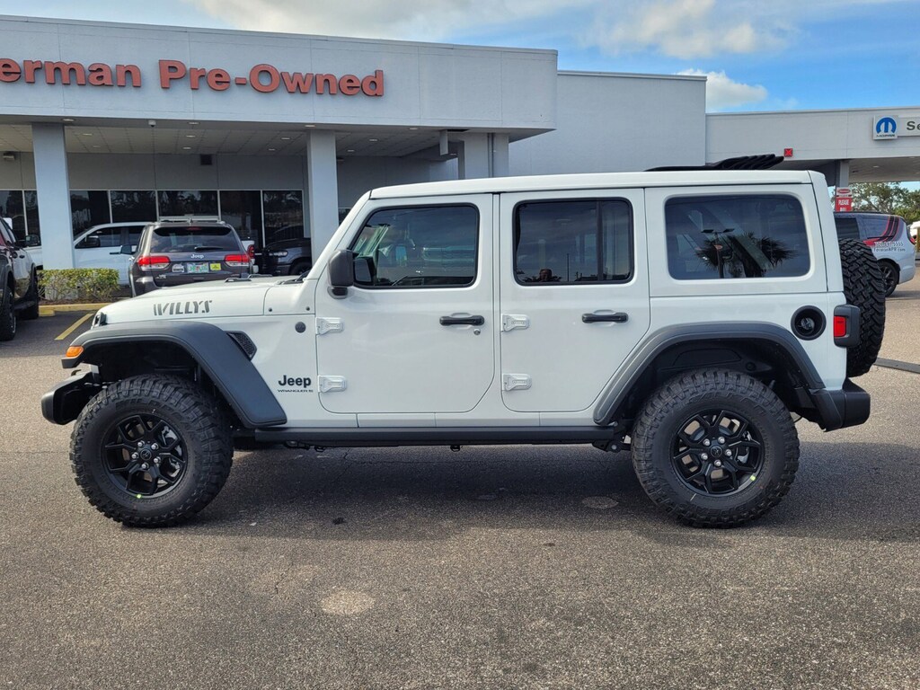 Bright White Clearcoat 2026 Wrangler Willys 4WD 8-Speed Automatic 2.0L I4 DOHC 12.3" Touchscreen Display, 2-Door Passive Entry, Front Door Locks, 4-Wheel Disc Brakes, 4-Wheel Drive Swing Gate Decal, 4G LTE Wi-Fi Hot Spot, 7 and 4 Pin Wiring Harness, 8 Speakers, ABS brakes, Advanced Brake Assist, Air Conditioning, Air Conditioning with Auto Temp Control, Air Filtering, AM/FM radio: SiriusXM with 360L, Apple CarPlay, Apple CarPlay/Android Auto, Automatic Headlamps, Aux Battery, Auxiliary Switches, Black Grille, Brake assist, Class II Receiver Hitch, Cloth Low-Back Bucket Seats, Cluster 7.0" TFT Color Display, Compass, Connectivity - US/Canada, Convenience Group, Conventional Differential Front Axle, Corning Gorilla Glass, Dana M210 Wide HD Tube Front Axle, Dana M220 Wide Rear Axle, Daytime Running Lamps LED Accents, Deep Tint Sunscreen Windows, Delay-off headlights, Driver door bin, Driver vanity mirror, Dual front impact airbags, Dual front side impact airbags, E-Locker Rear Axle, Electronic Stability Control, Emergency/Assistance Call, Enhanced Adaptive Cruise Control, For More Info, Call 800-643-2112, Front anti-roll bar, Front Bucket Seats, Front Center Armrest w/Storage, Front fog lights, Front LED Fog Lamps, Front reading lights, Full Speed Forward Collision Warning Plus, Google Android Auto, Heated Front Seats, Heated Steering Wheel, Illuminated entry, Injection Molded Black Rear Bumper, Integrated Center Stack Radio, Integrated roll-over protection, LED Premium Reflector Headlamps, Low tire pressure warning, Mold in Color Bumper with Gloss Black, Molded in Color Rubicon Highline Flare, MOPAR All-Weather Floor Mats, Non-Lock Fuel Cap Without Discriminator, Normal Duty Suspension, Occupant sensing airbag, Off-Road Plus Mode, Outside temperature display, Overhead airbag, Panic alarm, ParkView Rear Back-Up Camera, Passenger door bin, Passenger vanity mirror, Power Heated Mirrors, Power steering, Power Top Quarter Window Storage Bag, Power windows, Premium Wrapped Steering Wheel, Quick Order Package 22W Willys, Radio data system, Radio: Uconnect 5 with 12.3" Display, Rear anti-roll bar, Rear reading lights, Rear Window Defroster, Rear Window Wiper/Washer, Remote keyless entry, Removable Rear Quarter Windows, Security Alarm, SiriusXM Radio Service, SiriusXM with 360L, Sky 1-Touch Power Top, Speed control, Split folding rear seat, Steering wheel mounted audio controls, Stop-Start Dual Battery System, Sun Visors with Illuminated Vanity Mirrors, Tachometer, Telescoping steering wheel, Tilt steering wheel, Traction control, Trip computer, Universal Garage Door Opener, Variably intermittent wipers, Wheels: 17" x 7.5" Black Steel Styled, Wheels: 17" x 7.5" Painted Black, Willy's Suspension, Willys Hood Decal. Price includes: $1500 - 2026 National Stellantis Loyalty Retail Bonus Cash . Exp. 01/05/2026 $2000 - 2026 National Select Inventory Bonus Cash. Exp. 01/05/2026